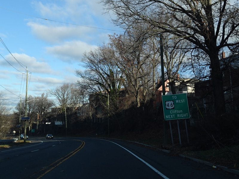 Turn left at this traffic light for access to Bergen Boulevard (NJ 63). The cross street is known as Bergen Boulevard and ends a few blocks south of here at NJ 63, which is also known as Bergen Boulevard. Only New Jersey could manage to cook up something this confusing!
