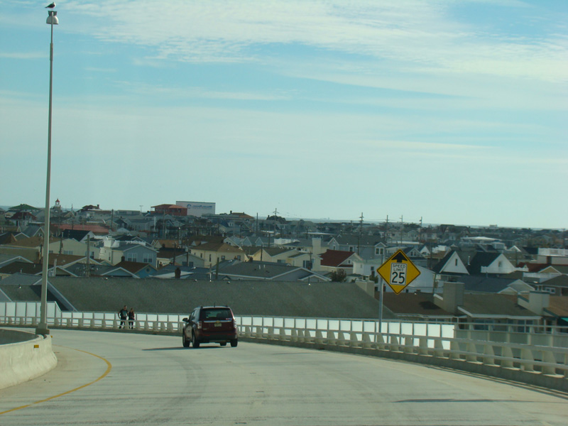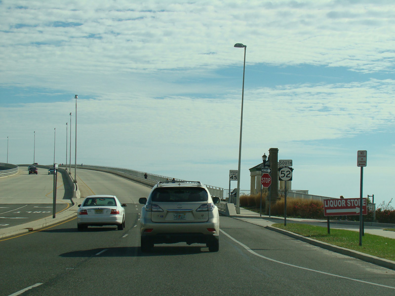The causeway touches down in Ocean City. NJ 52 officially ends here, but it is signed as extending one block ahead.