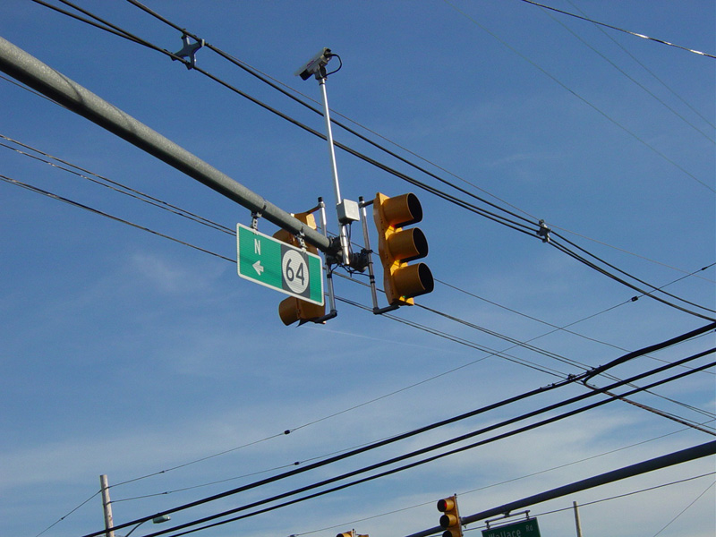 This picture shows the one and only route shield for NJ 64, which hangs from the traffic light at the southern terminus.