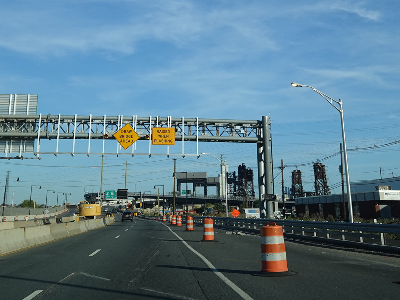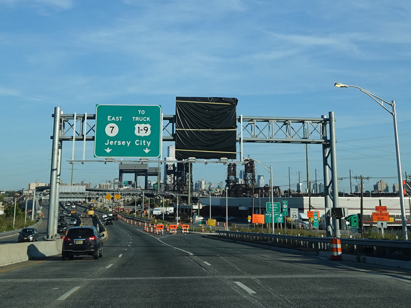 Skipping a substantial distance to the south and east, the Wittpenn Bridge carries NJ 7 across the Hackensack River to Jersey City.