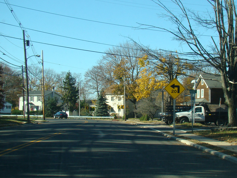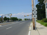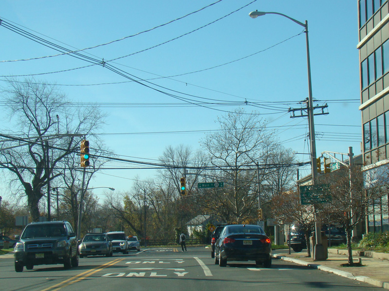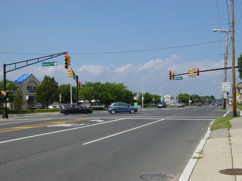 Corlies Avenue (NJ 33) begins on the left at this traffic light. Broadway is to the right.