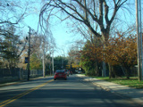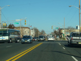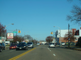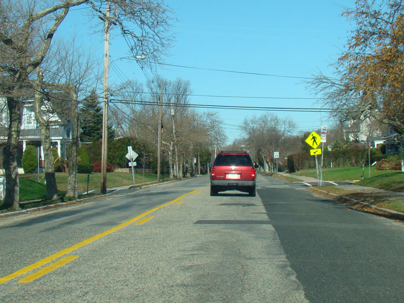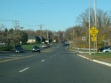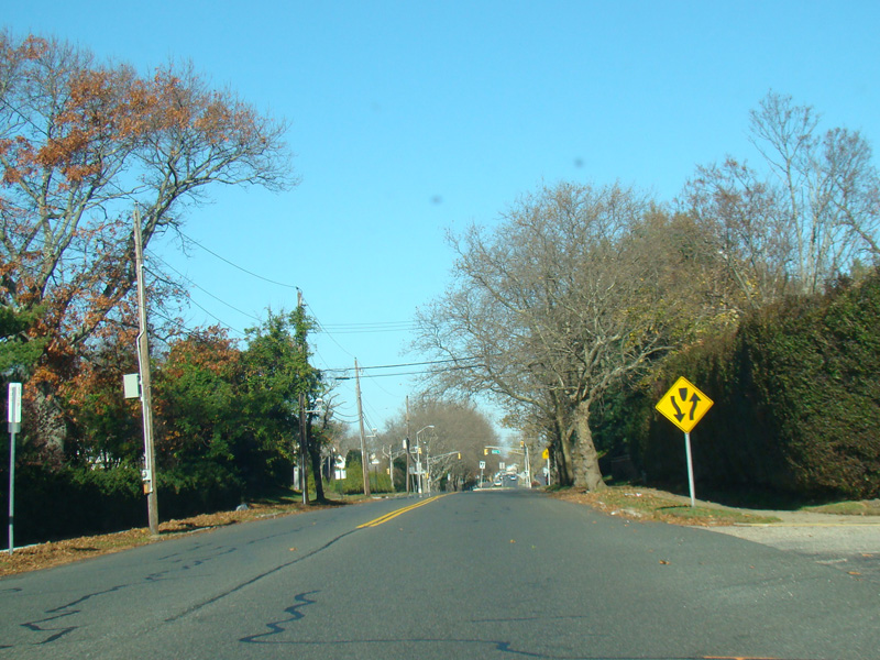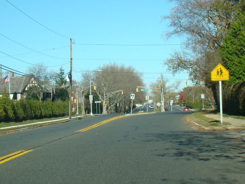 Norwood Avenue widens to become a four-lane divided road. There are traffic lights at Roseld Avenue, Brighton Avenue, Phillips Avenue, and Roosevelt Avenue.