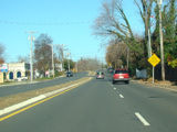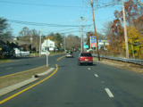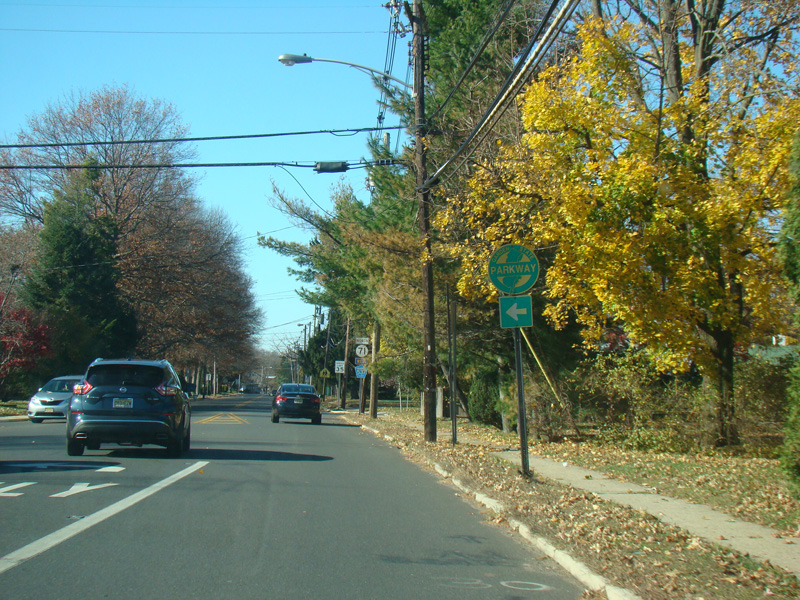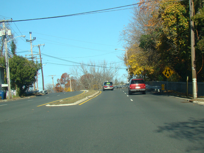 There is an bridge over the North Jersey Coast Line of New Jersey Transit. On the other side, the median ends and Norwood Avenue narrows down to two lanes.