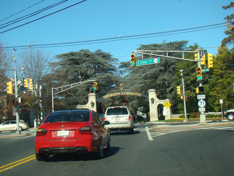 Norwood Avenue ends at a traffic light at Cedar Avenue. Turn left to stay on NJ 71. Monmouth University is straight ahead.