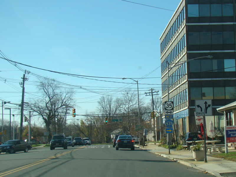 Broad Street ends at a traffic light at Main Street (NJ 35). Turn left to go south. Turn right to go north and for CR 537. NJ 71 ends here.