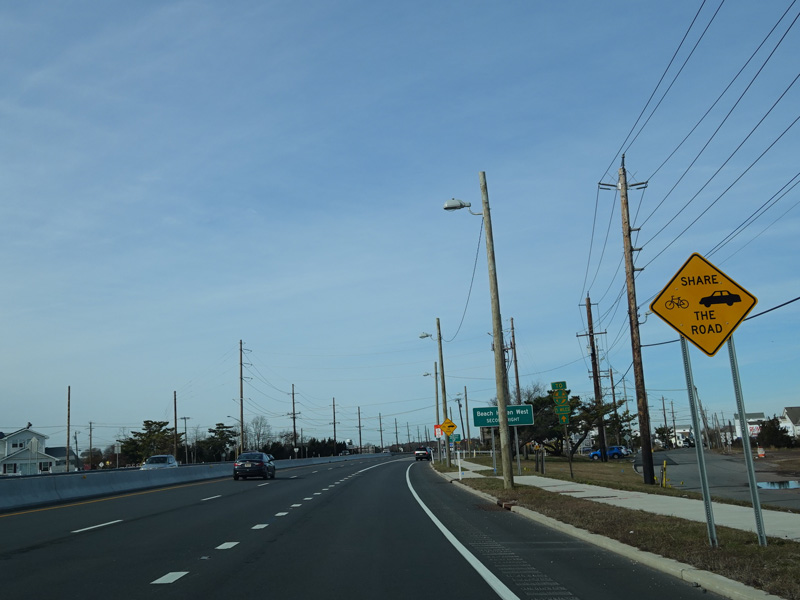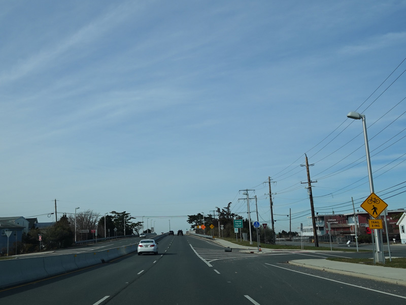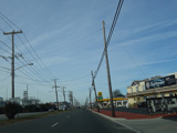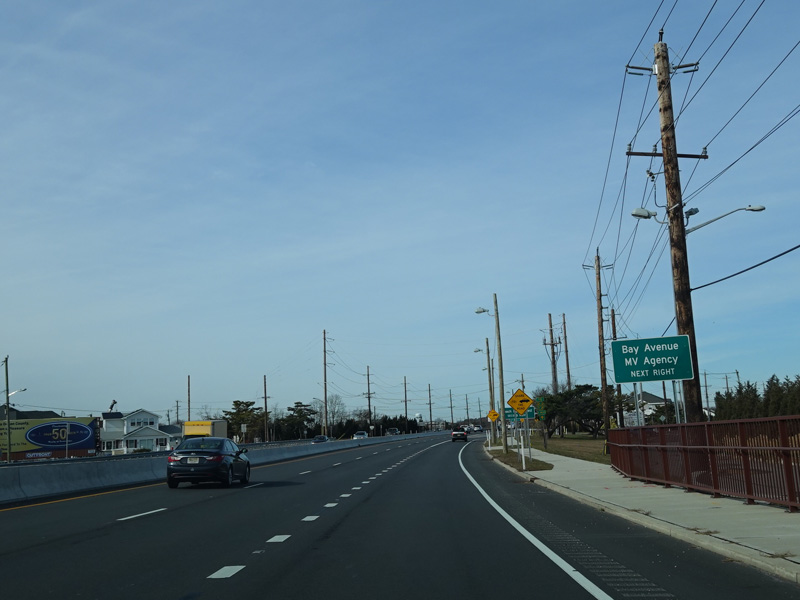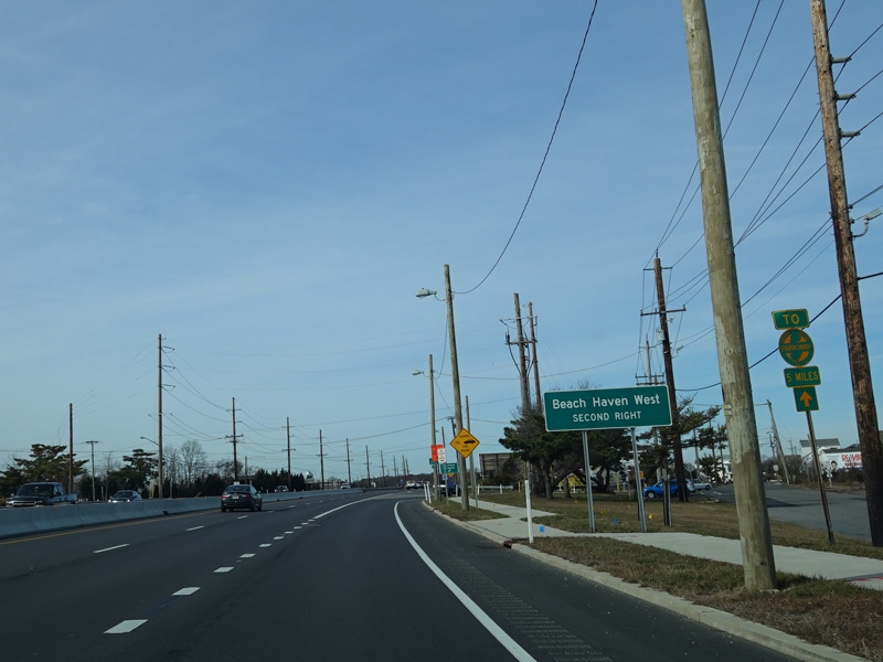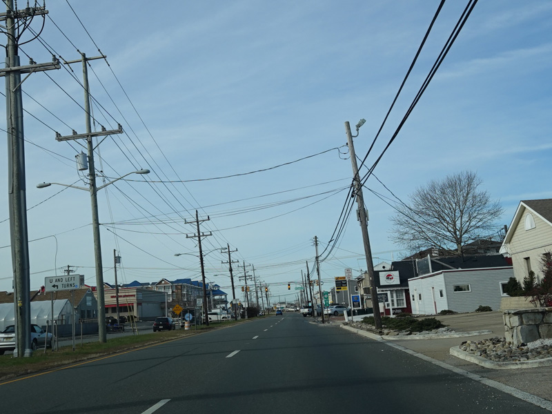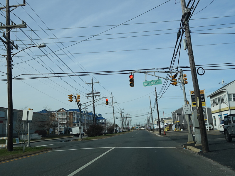 West 8th Street runs west as a two-lane one-way street. There is a traffic light at Barnegat Avenue.