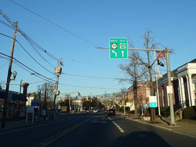 NJ 79 is a north/south route in Monmouth County. It begins at US 9 just south of its interchange with the Freehold Bypass (NJ 33). It passes through the downtown area of Freehold, where it is multiplexed with CR 537 along East Main Street for a few blocks. Heading out of town, it continues north to Matawan, where it ends at Middlesex Street (NJ 34).