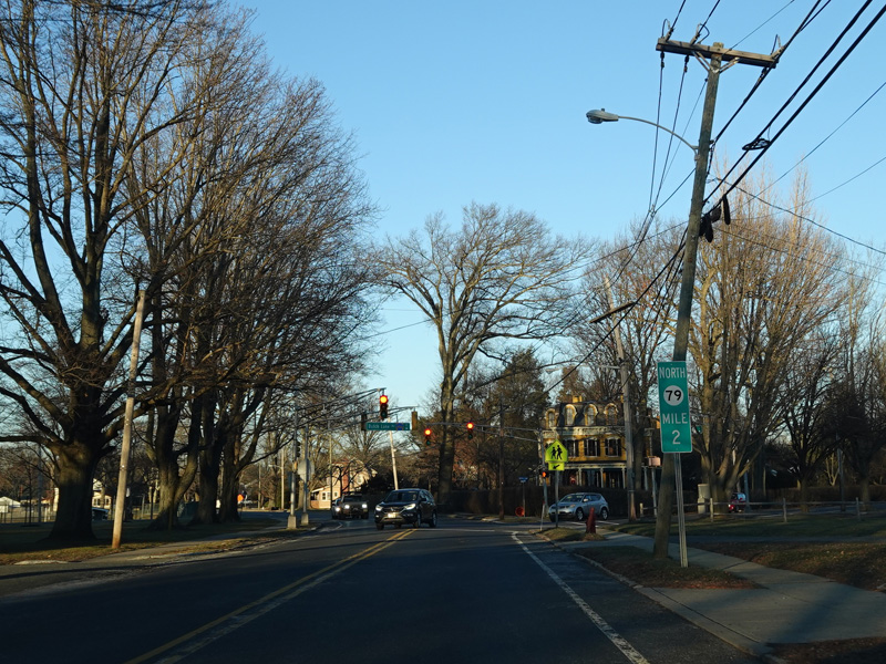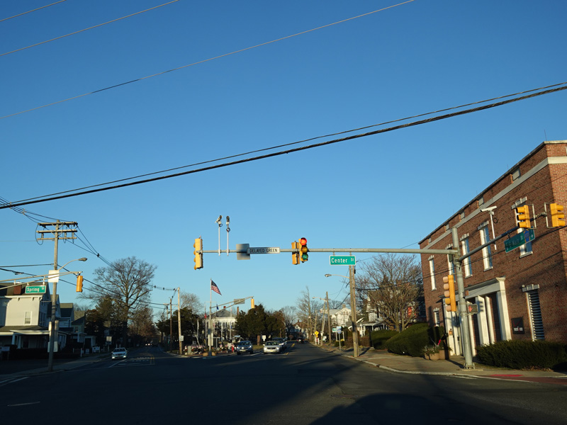There is a traffic light at Center Street and Spring Street. Immediately thereafter, the two routes split. Bear left onto Broadway to stay on NJ 79. Continue straight ahead on East Main Street for CR 537.