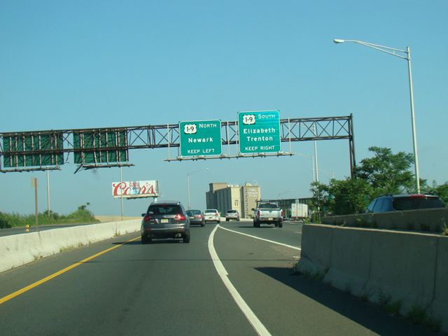 NJ 81 is a short expressway in Elizabeth that connects the New Jersey Turnpike (I-95) at exit 13A to the beginning of the expressway portion of US 1/US 9. It has only one interchange, a pair of exits for North Avenue and Dowd Avenue. It is signed solely in that there are begin and end shields along it and signage on the traffic lights on North Avenue and Dowd Avenue. Exit 13A of the turnpike is marked as being for Elizabeth Seaport and Newark Airport, while the split for NJ 81 on US 1/US 9 is marked as being for North Avenue, Dowd Avenue, and the turnpike.