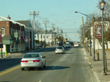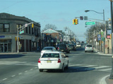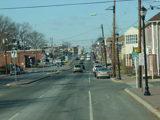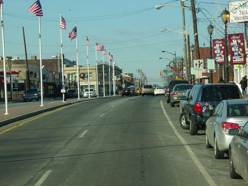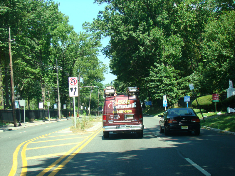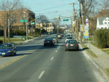 Morris Avenue continues northwest as a four-lane undivided road. There are traffic lights at Colonial Avenue, Greenwood Road, and Sayre Road.