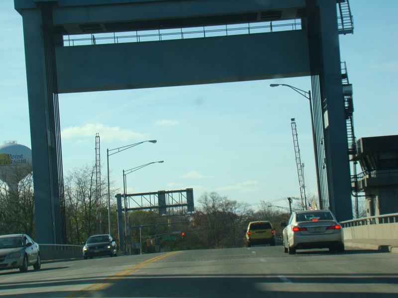 There is a traffic light at Memorial Drive, followed by a lift bridge over the Point Pleasant Canal.