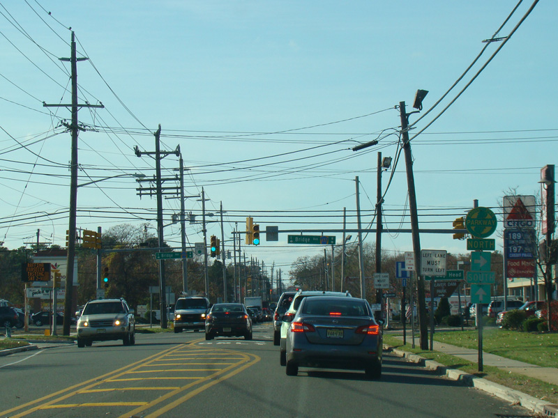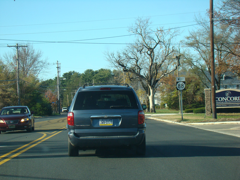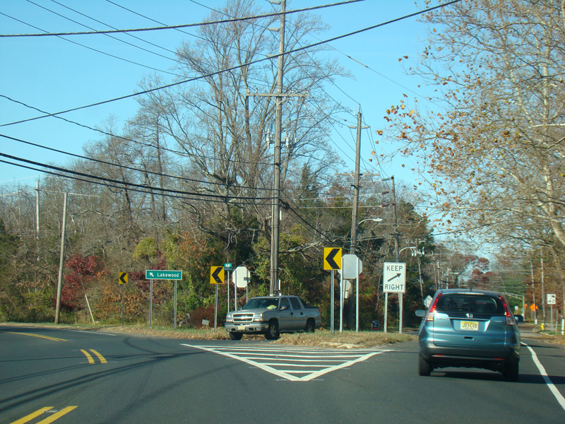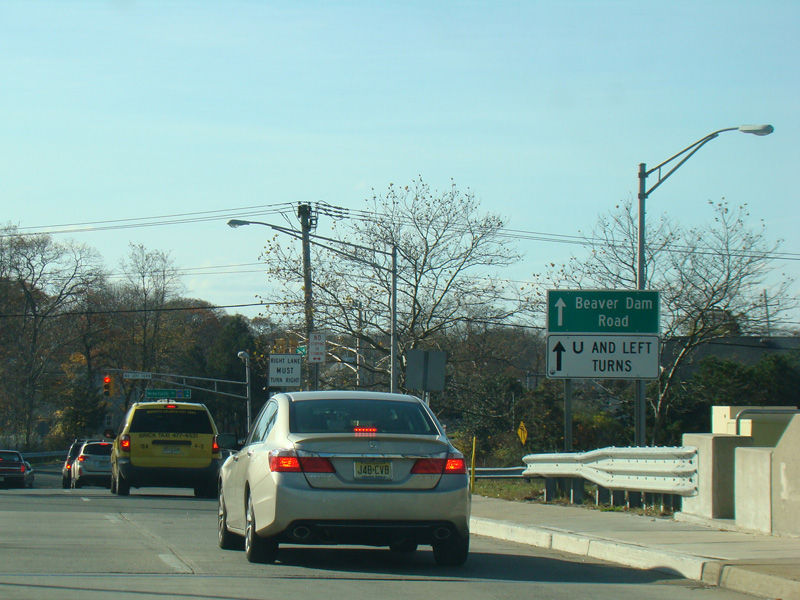 There is a traffic light at Post Road, which carries the eastbound direction of NJ 88. Motorists heading west can turn left here, but it is more direct to just continue straight ahead.