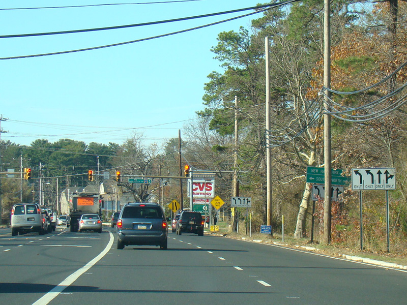 On the other side of the bridge, there is a traffic light at Herbertsville Road (Spur CR 549) and Beaver Dam Road (CR 630). Herbertsville Road is erroneously signed as CR 549 instead of Spur CR 549.