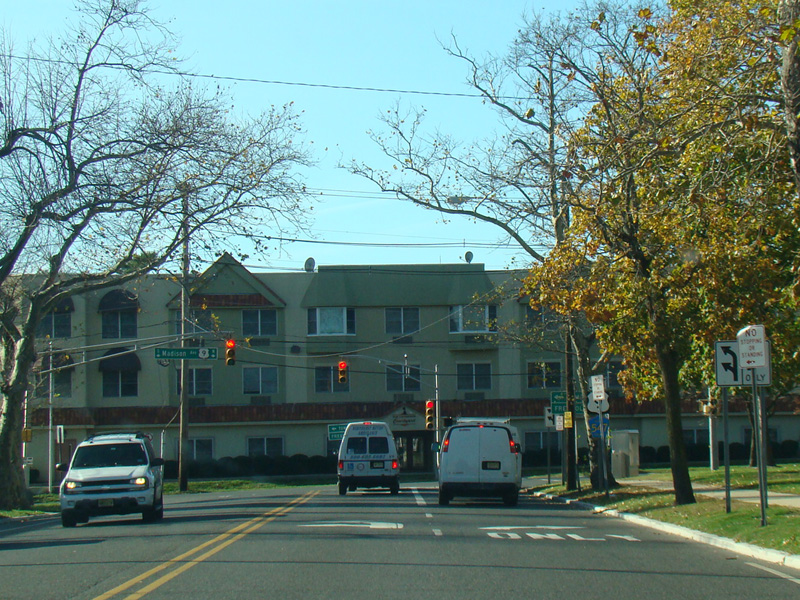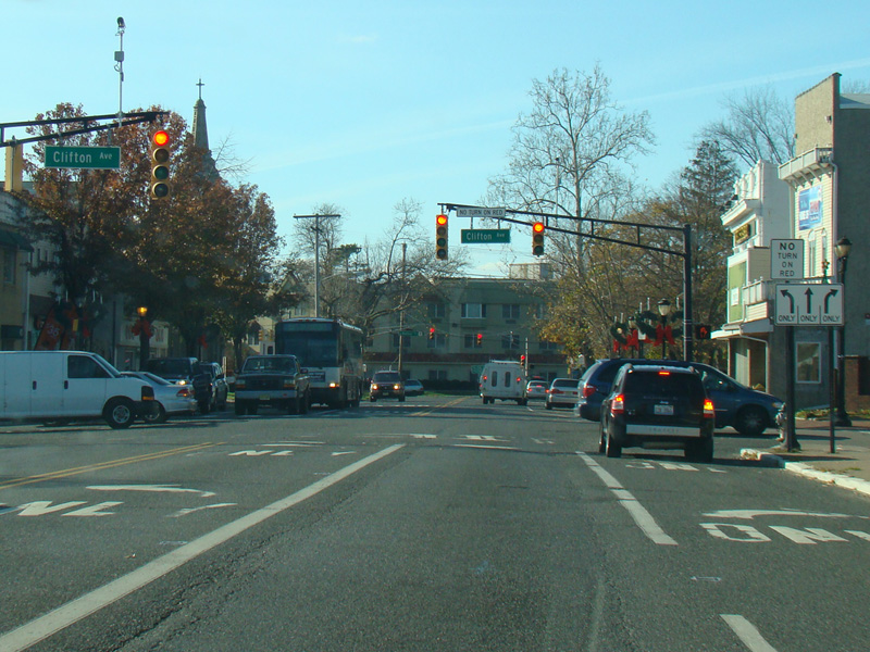NJ 88 ends at a traffic light at Madison Avenue (US 9). Turn right to go north or left to go south.