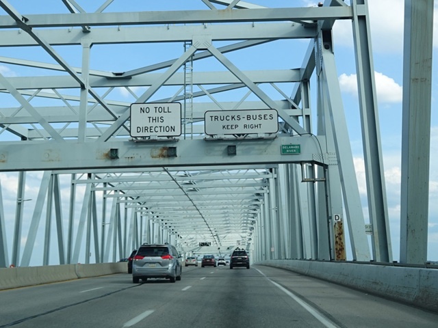 The Betsy Ross Bridge crosses the Delaware River between Philadelphia and its suburbs in New Jersey. The bridge is named after the creator of the American flag. On the Pennsylvania side, it connects to the Delaware Expressway (I-95). On the New Jersey side, there is a short approach freeway that merges into NJ 73 after a couple of miles. The bridge and its approach on the New Jersey side are designated NJ 90. New Jersey recognizes NJ 90 as ending at the state line, but it is shown on Pennsylvania maps as extending across the bridge to Philadelphia, and there are NJ 90 shields on the Delaware Expressway (I-95).