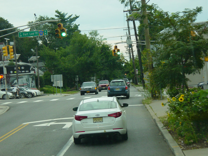 There is a traffic light at Fort Lee Road (CR 12). Turn right for access to the New Jersey Turnpike (I-95).