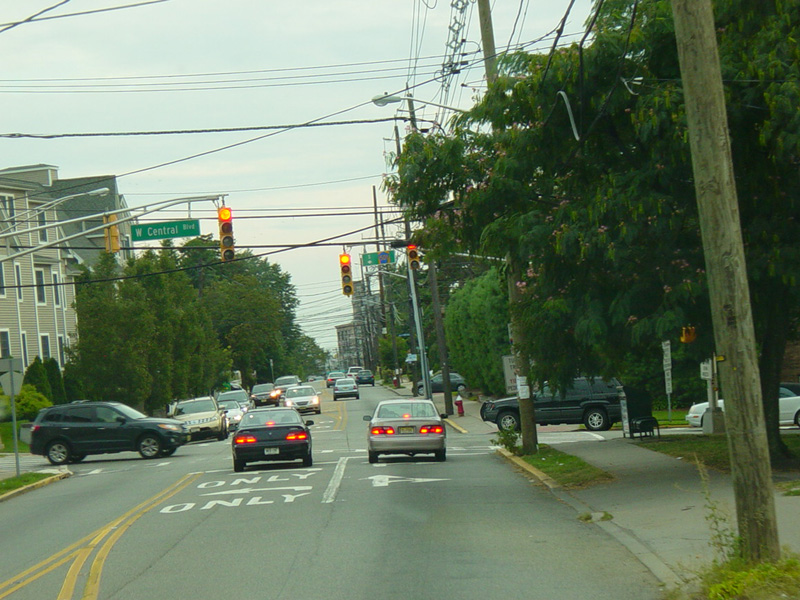 Grand Avenue intersects West Central Boulevard at a traffic light. CR 501 splits off from NJ 93 here. Turn left for CR 501. Continue straight ahead on Grand Avenue to stay on NJ 93.