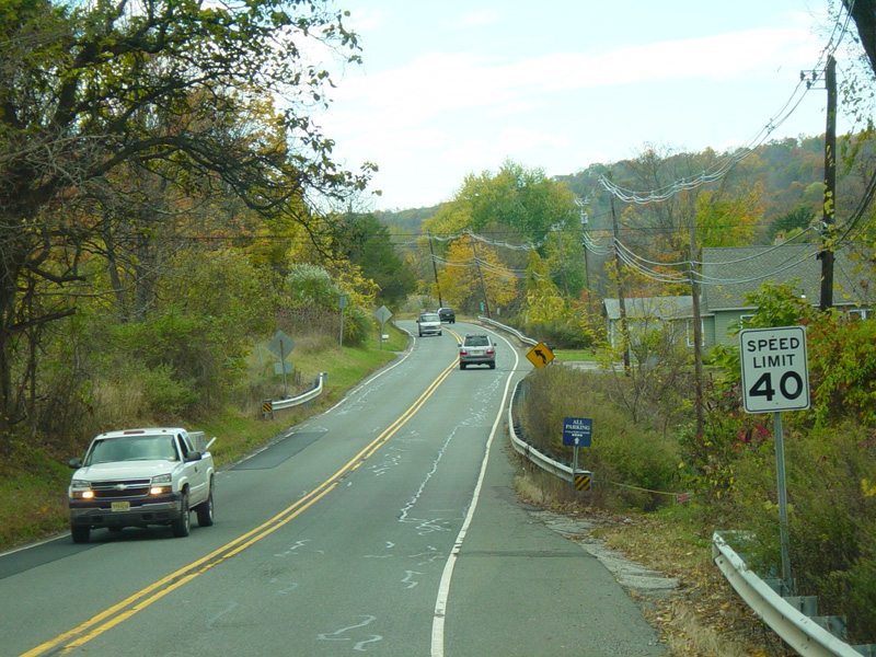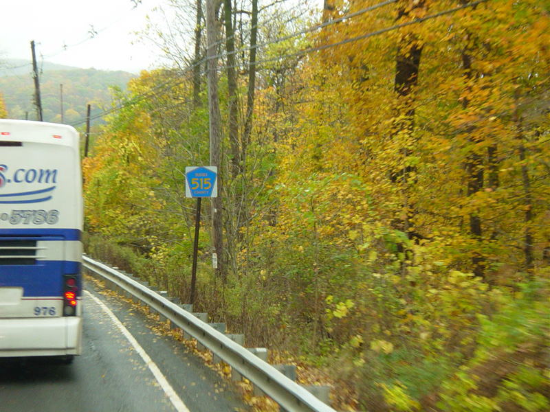 Welcome to New Jersey and to Vernon Township! Vernon-Warwick Road runs southwest as a two-lane undivided road. After a short distance, CR 515 merges in from the right.