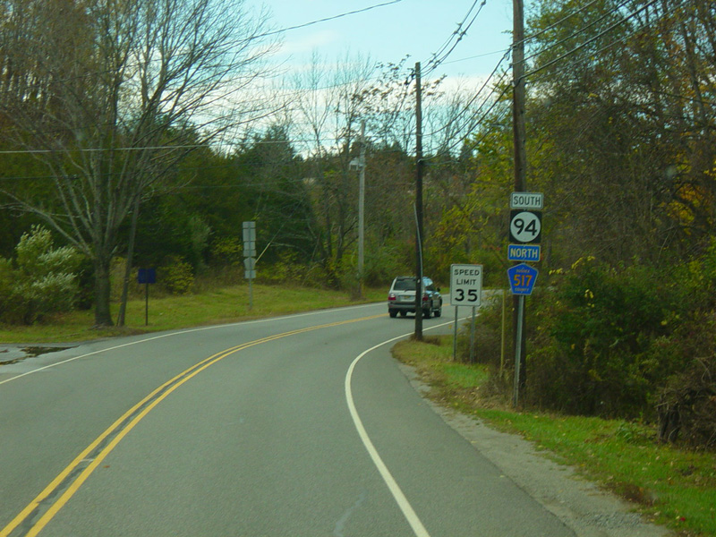 There is an uncontrolled intersection with CR 517. Turn left onto Rudetown Road to go south. Northbound CR 517 is multiplexed with NJ 94 straight ahead.