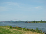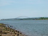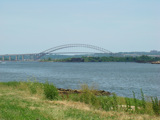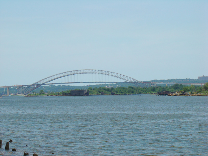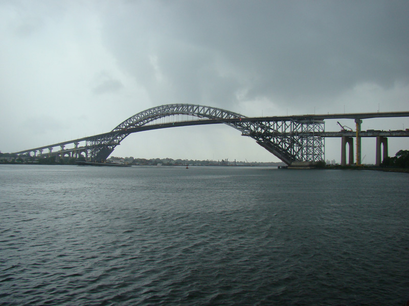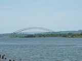 This picture shows the Bayonne Bridge as observed from Bayonne. Construction is currently in progress to raise the roadway so that tall ships can pass under the bridge.
