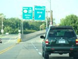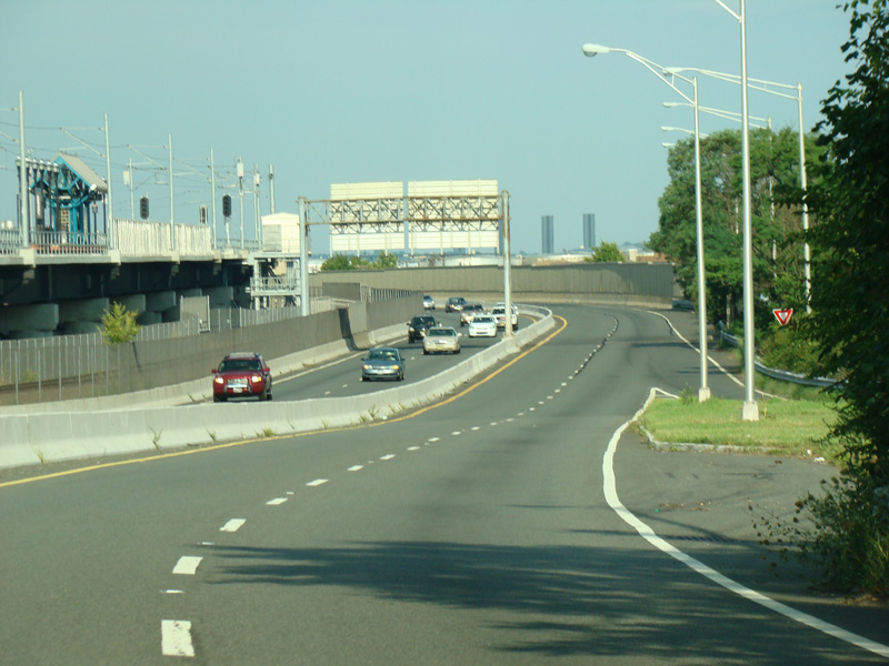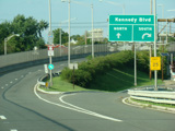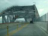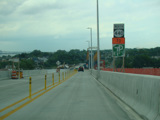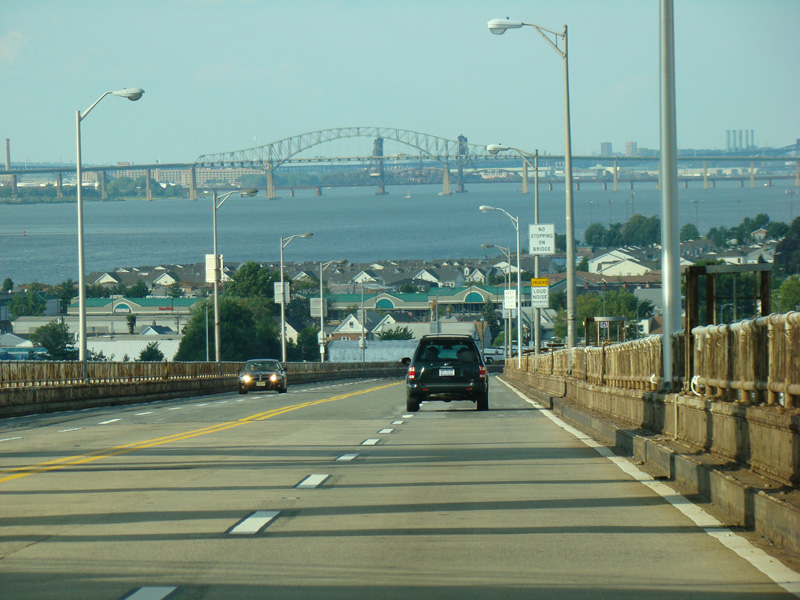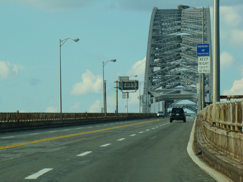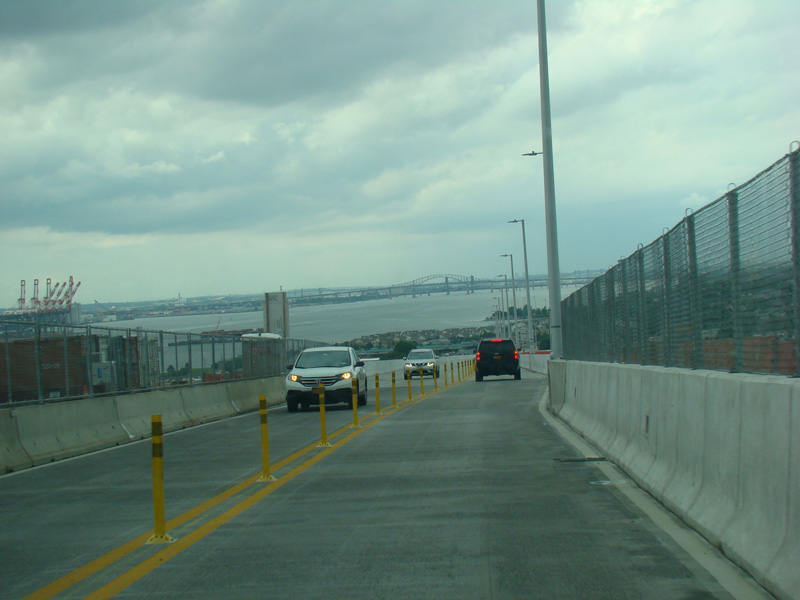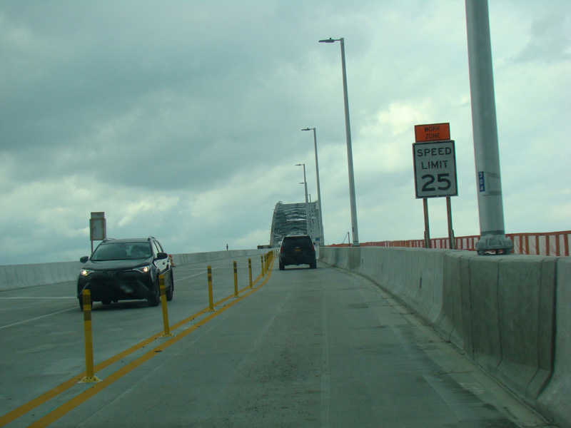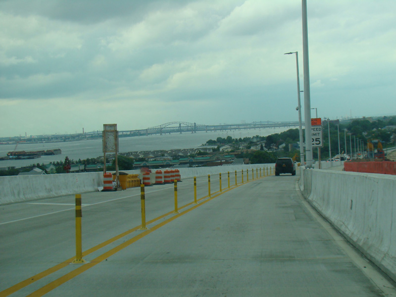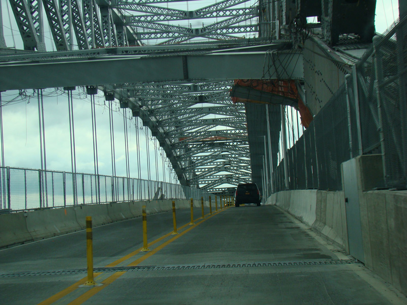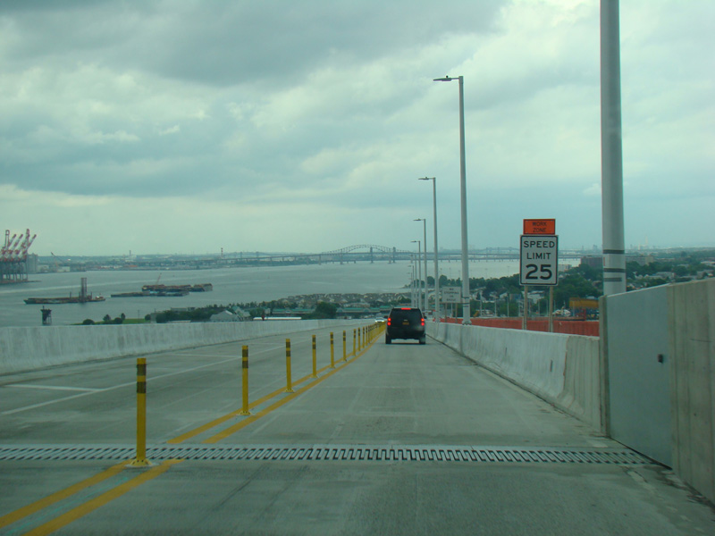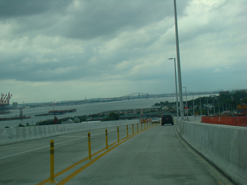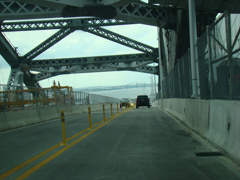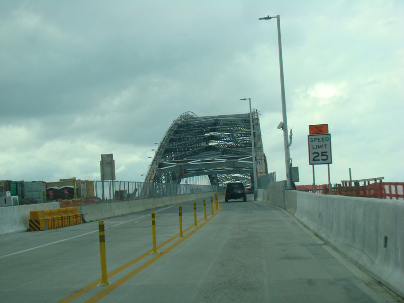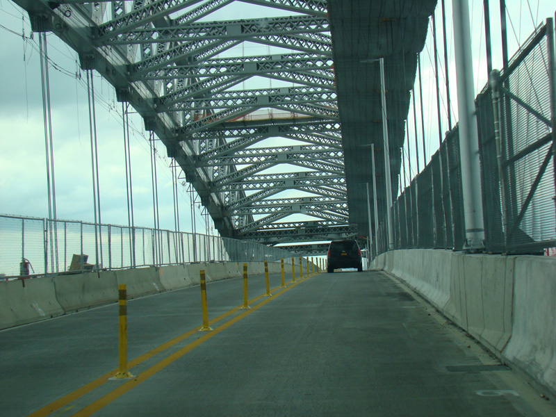 These pictures show the Bayonne Bridge as it appeared while the construction was in progress. At the time, only half of the new roadway was open. The exit for Kennedy Boulevard (CR 501) was temporarily closed.