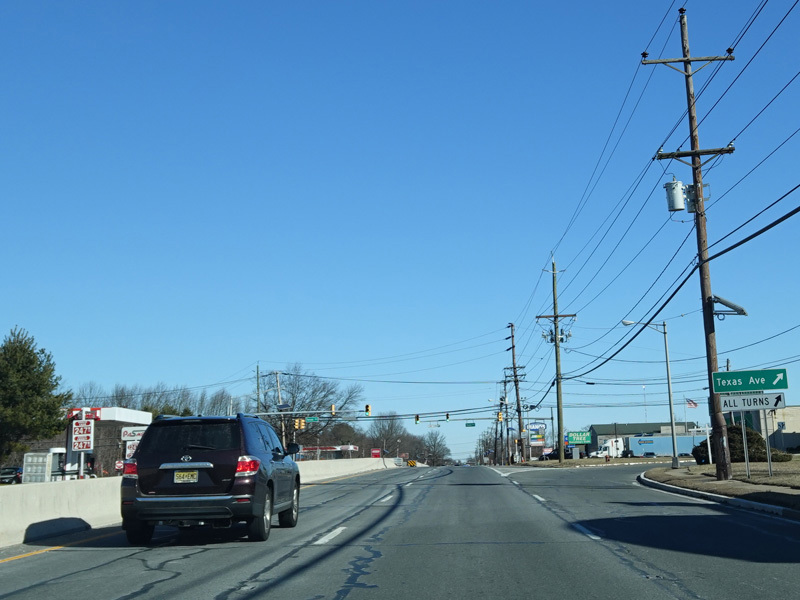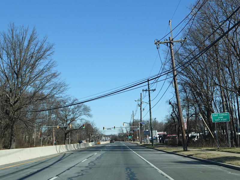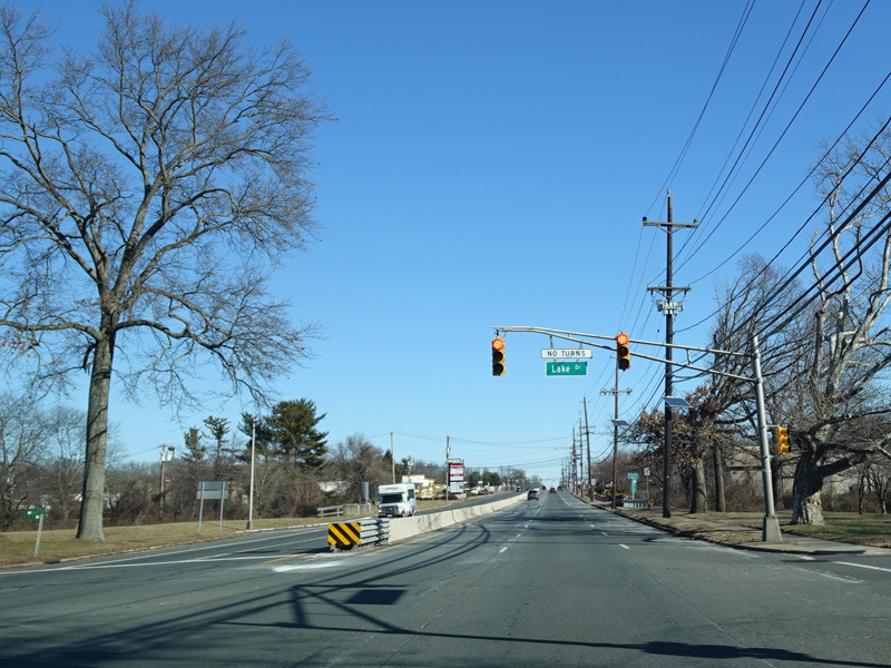 Brunswick Avenue runs north as a four-lane divided road. There are traffic lights with jughandles at Lake Avenue, Texas Avenue, and Darrah Lane.
