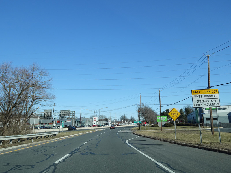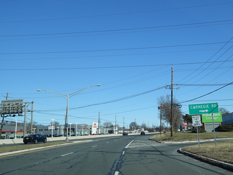 The business route ends here. Brunswick Avenue merges with the Trenton Freeway to form Brunswick Pike. Just before the merge, there is an exit for Carnegie Road.