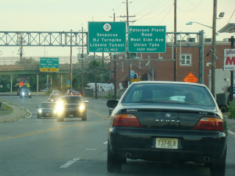 There is a grade-separated interchange with Paterson Plank Road (CR 681), West Side Avenue, and Union Turnpike (CR 676). Immediately thereafter, there is an entrance to NJ 3, which begins here.