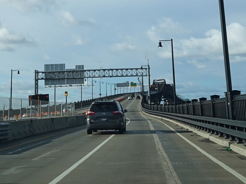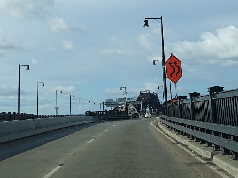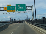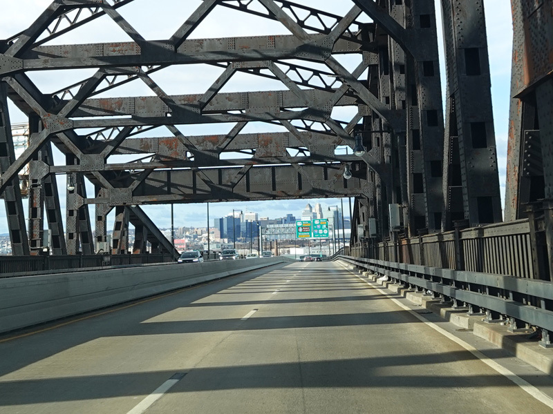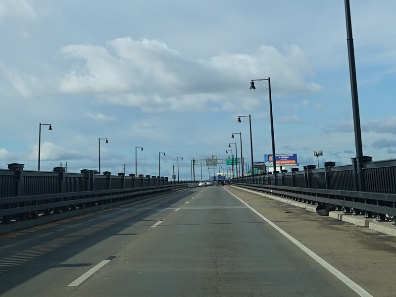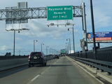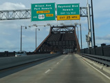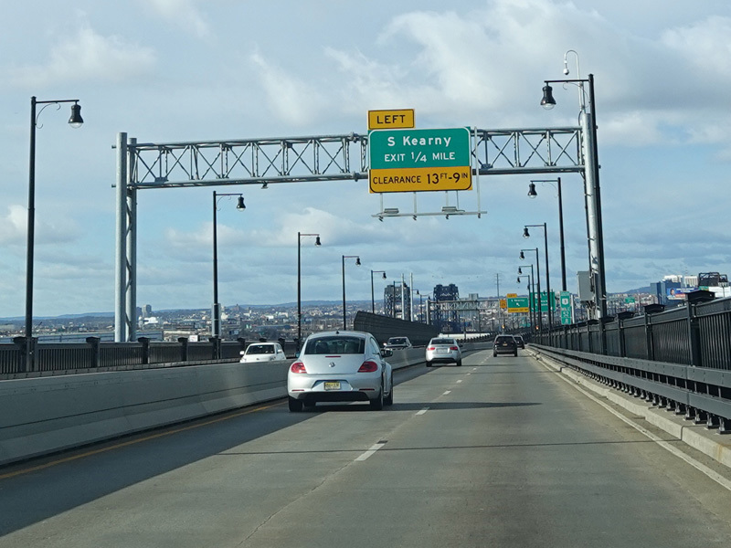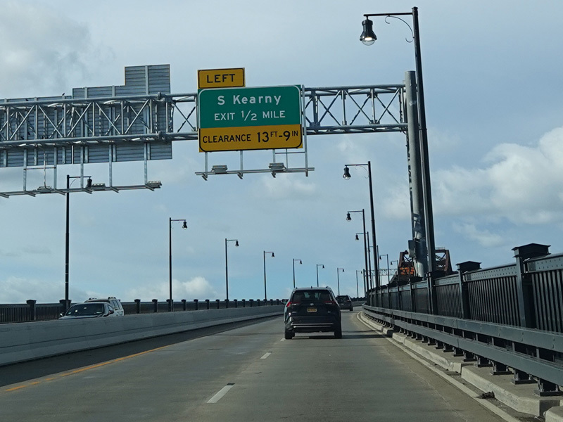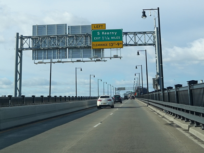 The Pulaski Skyway consists of a pair of bridges carrying US 1/US 9 across the Hackensack River and the Passaic River from Jersey City to Newark. There is an exit between the two rivers for South Kearny.