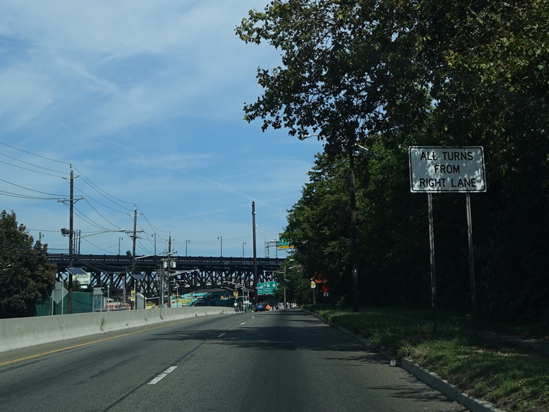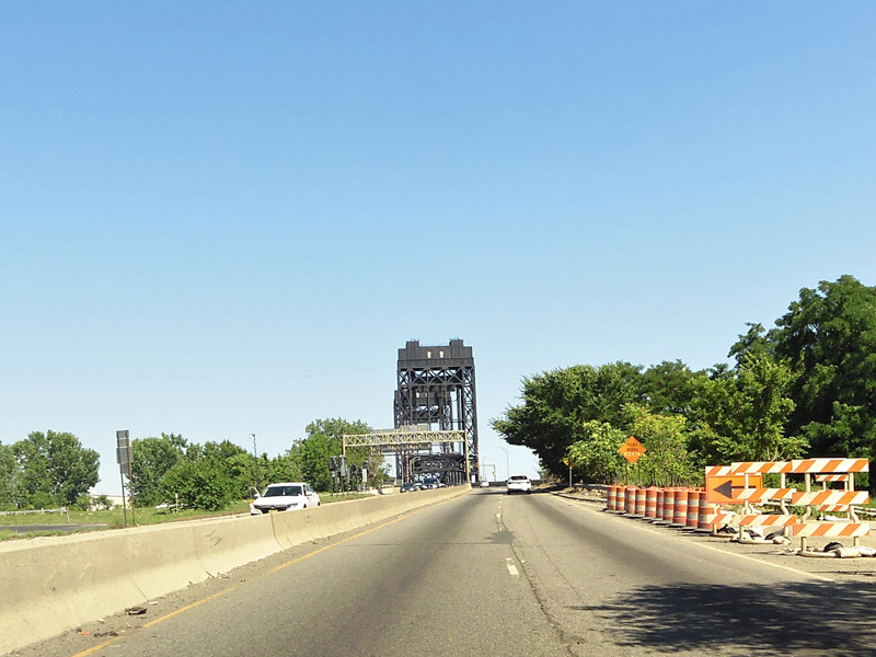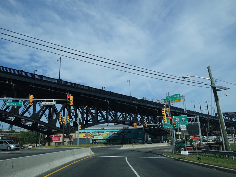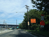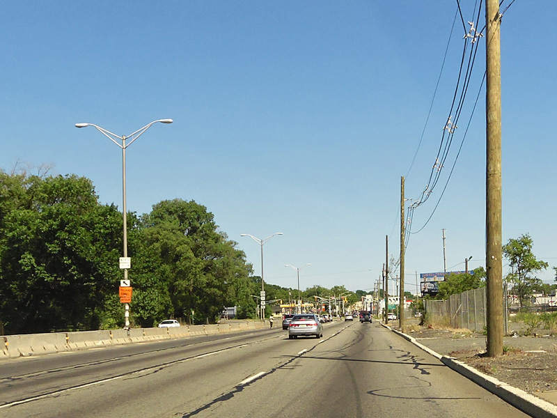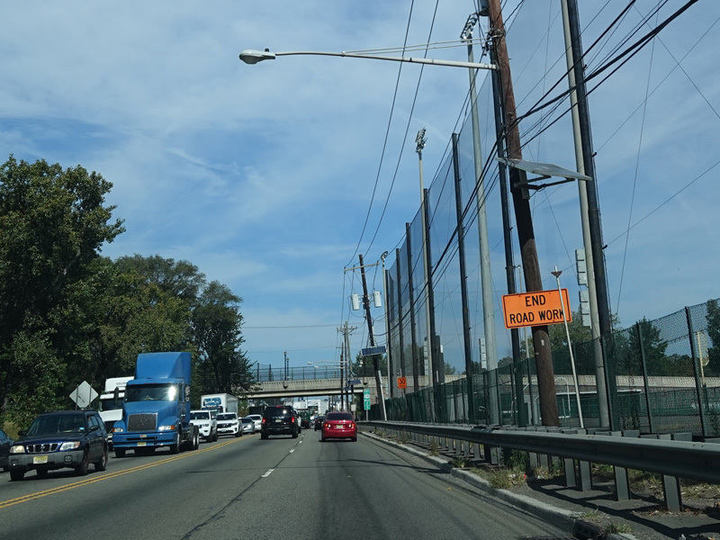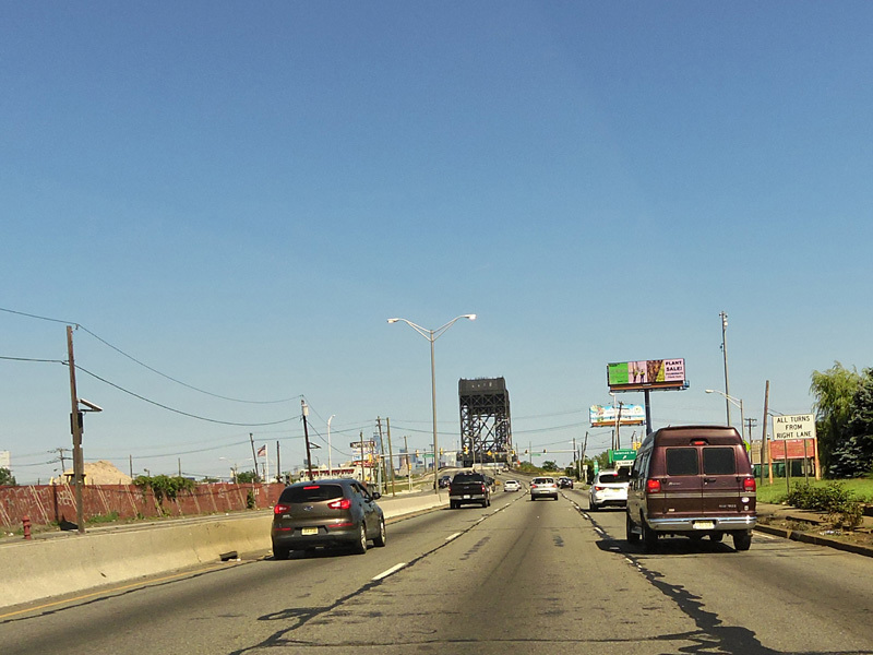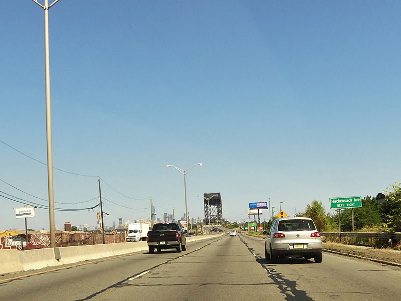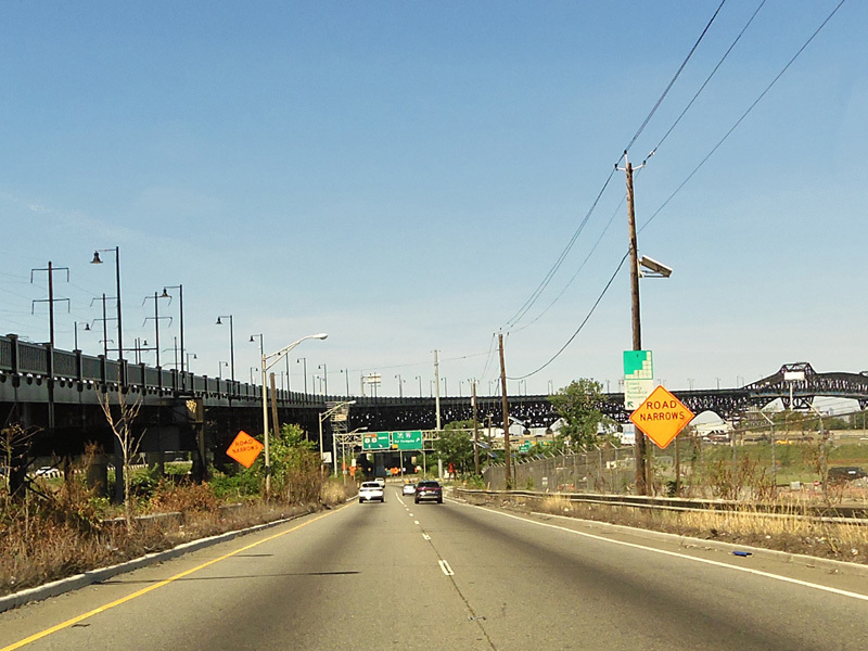 The roadway narrows down to a single lane and merges into NJ 7 right before the Wittpenn Bridge.