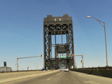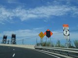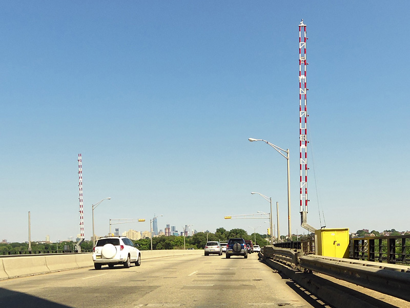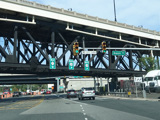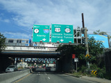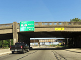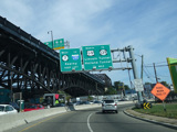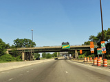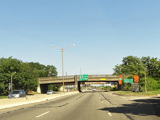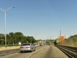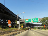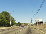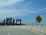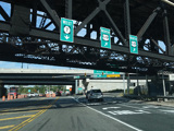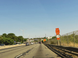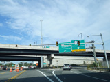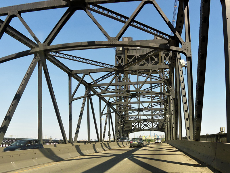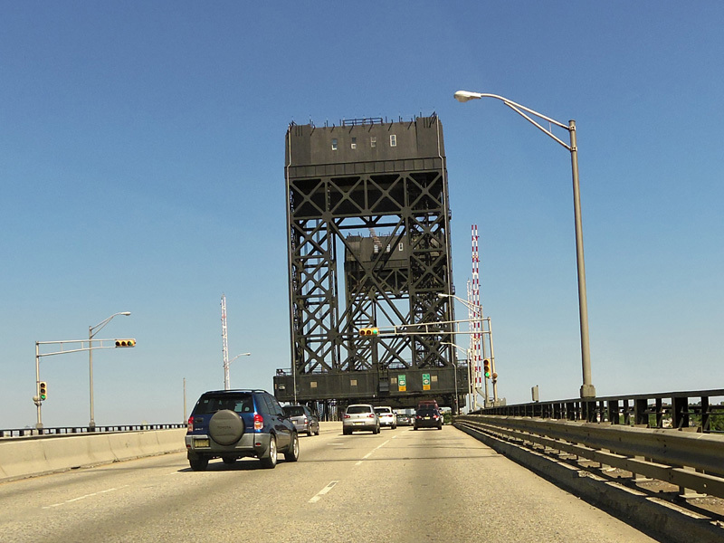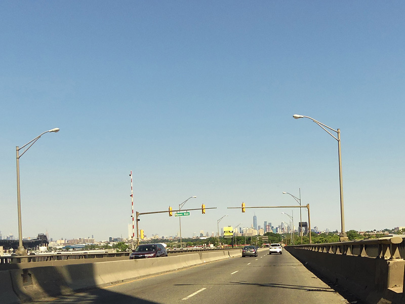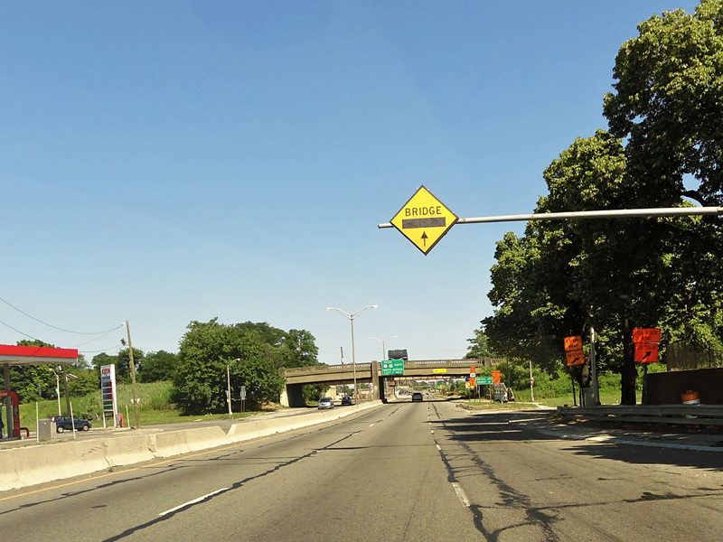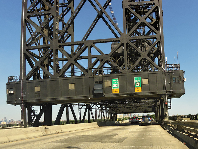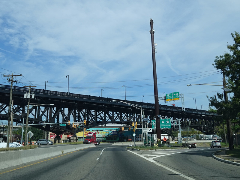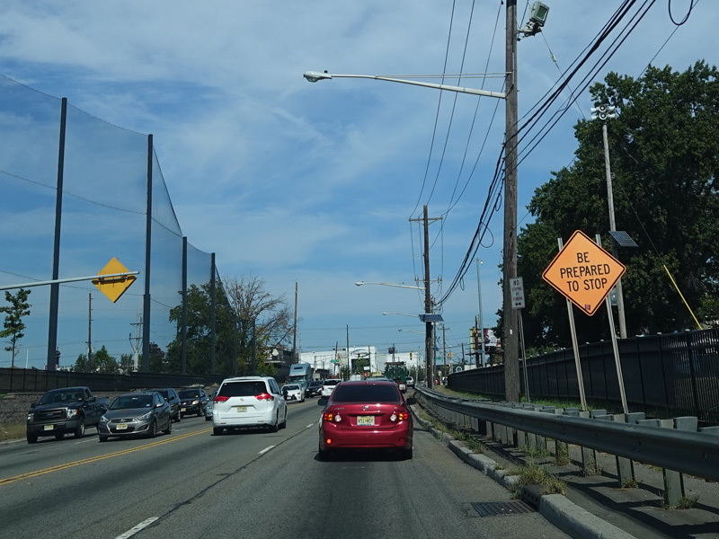 The roadway narrows down to a single lane and merges into NJ 7 right before the Wittpenn Bridge.