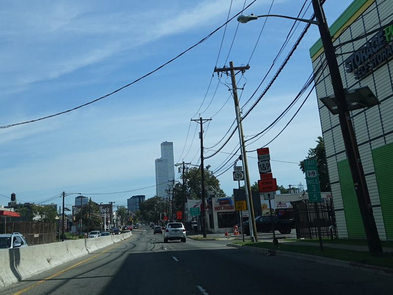 Truck US 1/US 9 begins at the Pulaski Skyway in Newark. There is an exit for the New Jersey Turnpike (I-95).