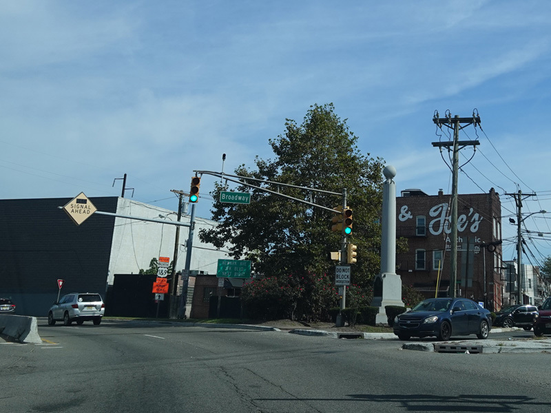 There is a traffic light. Turn left to stay on Truck US 1/US 9. Turn right for NJ 440, which begins here.