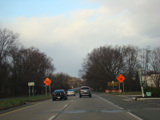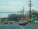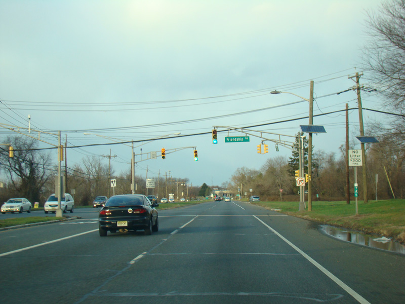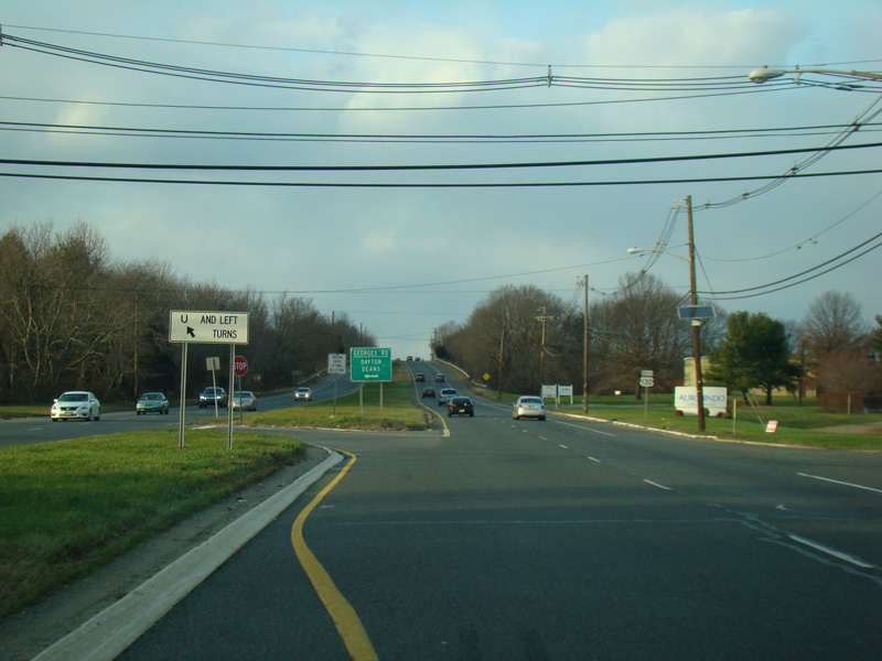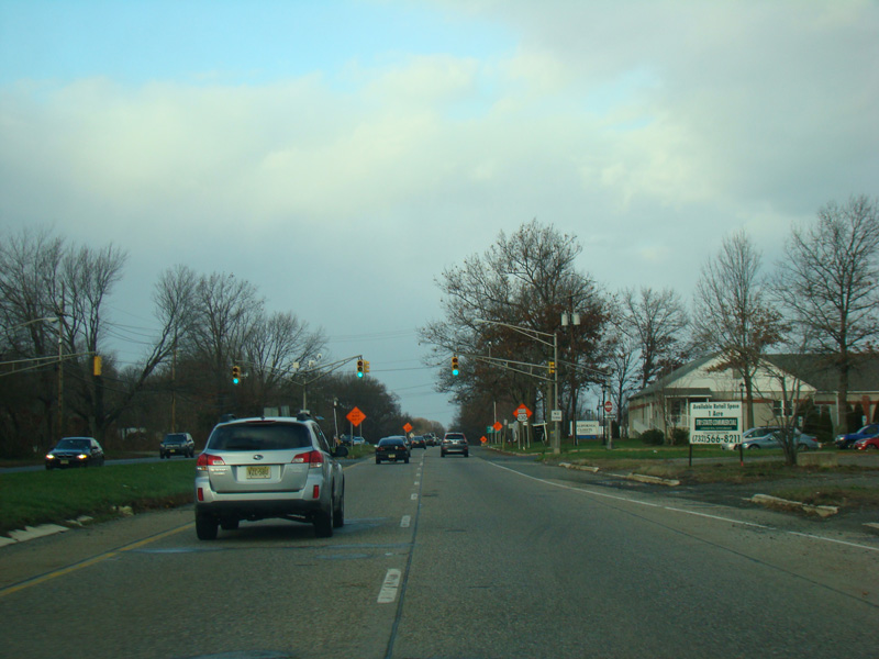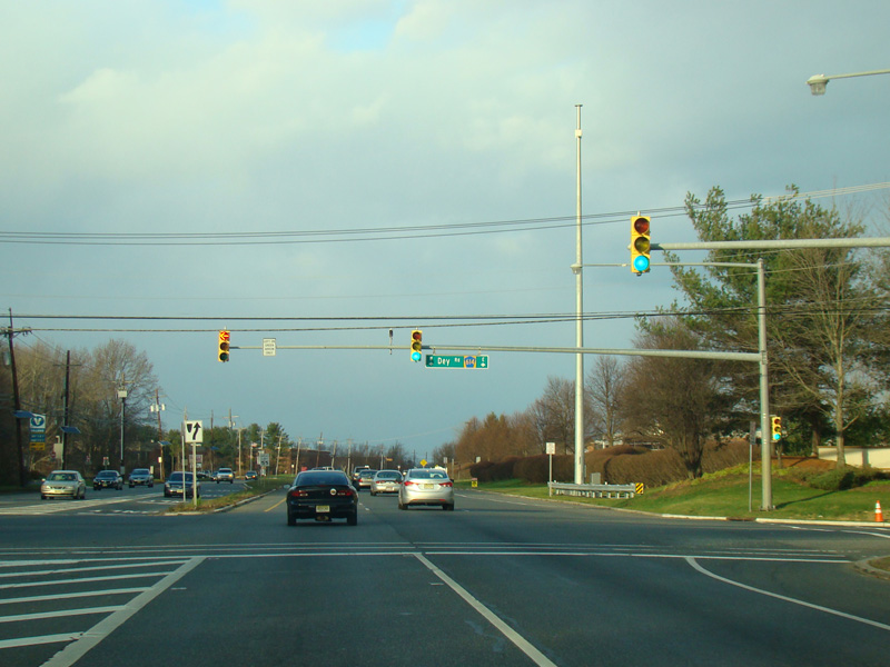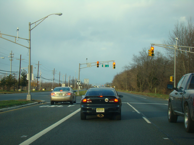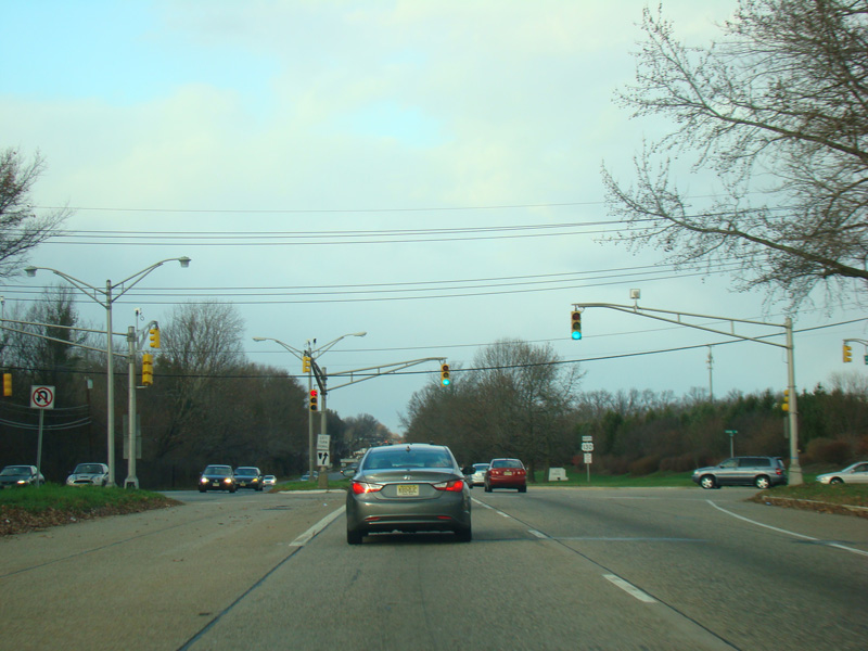 There is a traffic light with jughandles at Half Acre Road (CR 535).