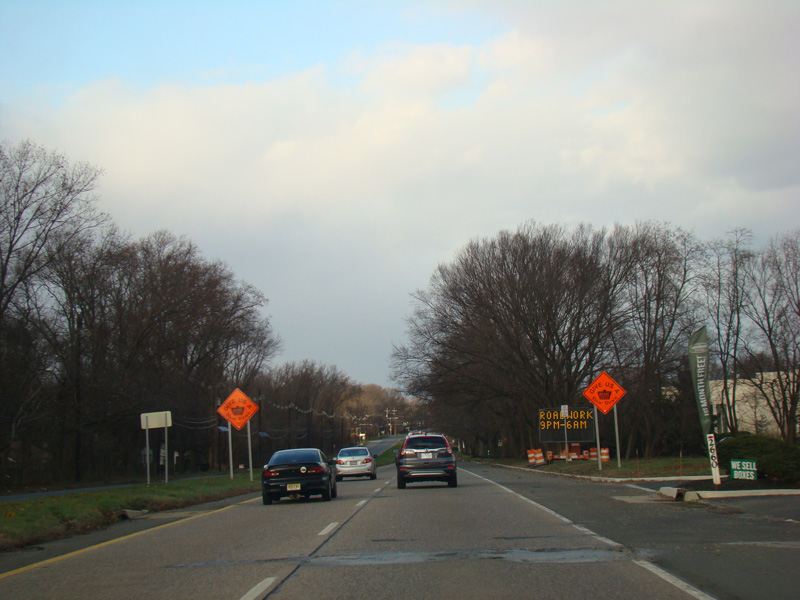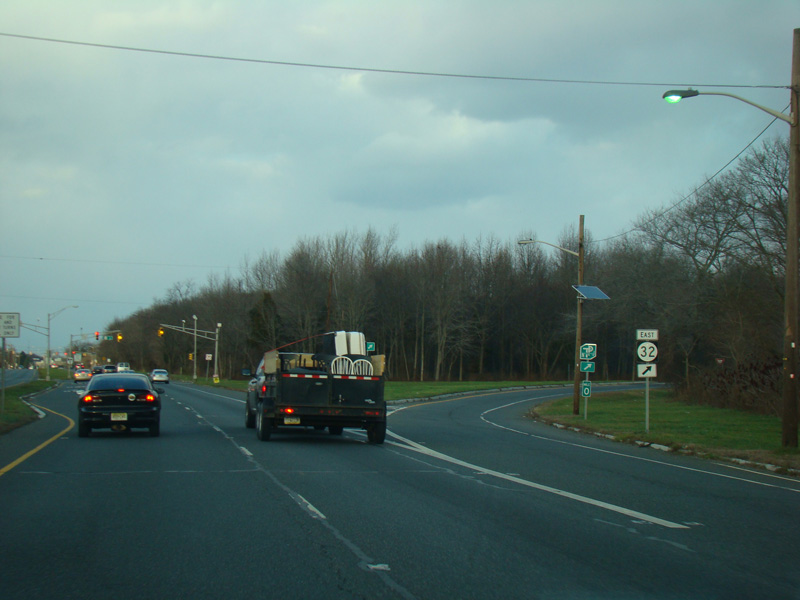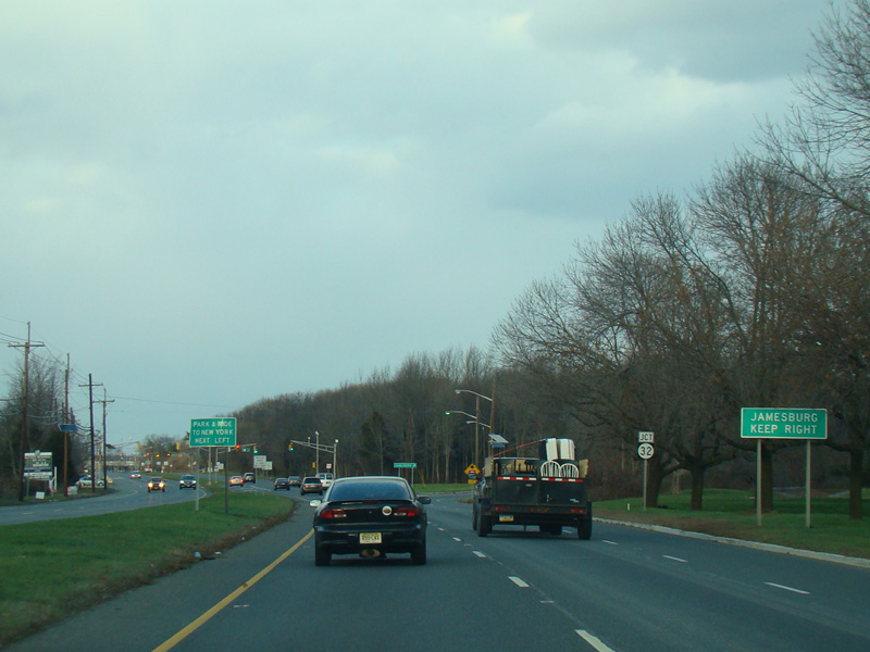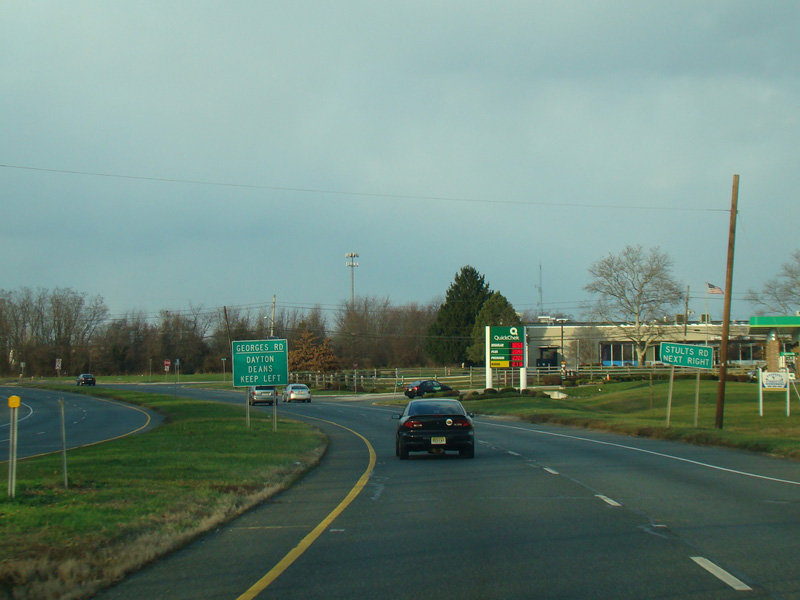 There is a grade-separated interchange at Ridge Road (CR 522) east. Westbound CR 522 is multiplexed with US 130 straight ahead.