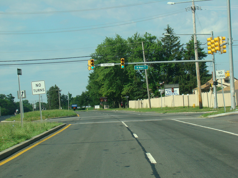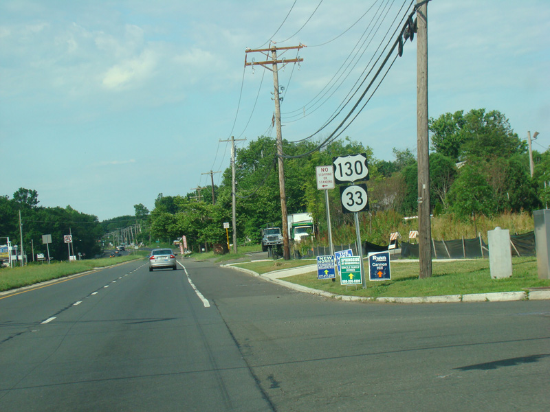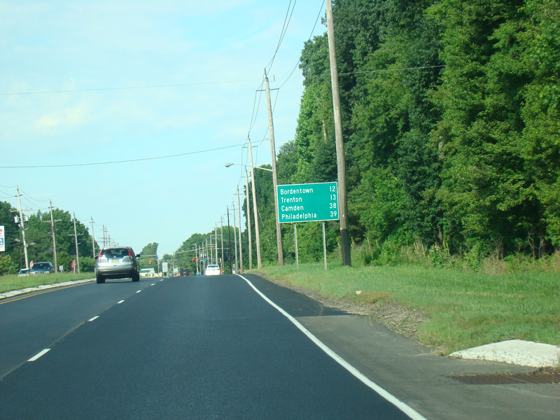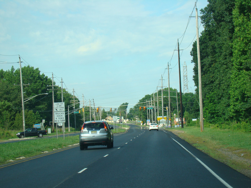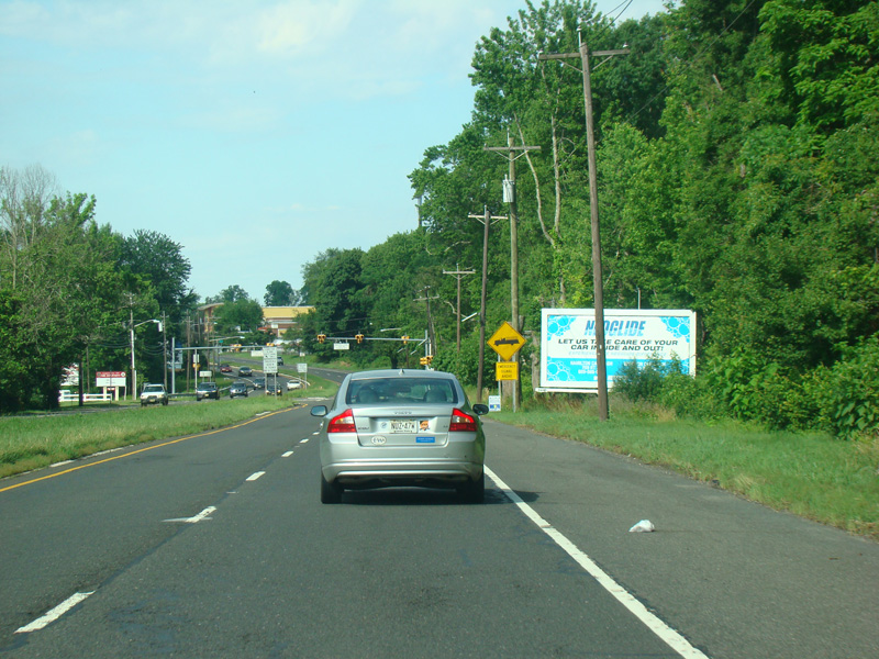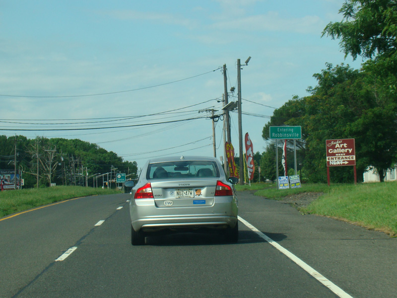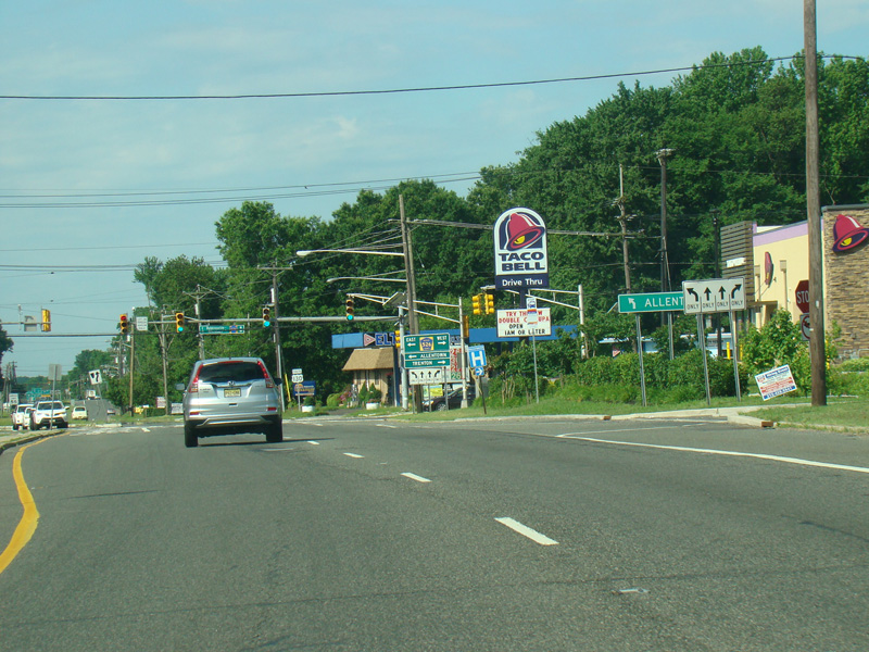There is a traffic light at Robbinsville-Allentown Road (CR 526). Turn left to go east or right to go west.