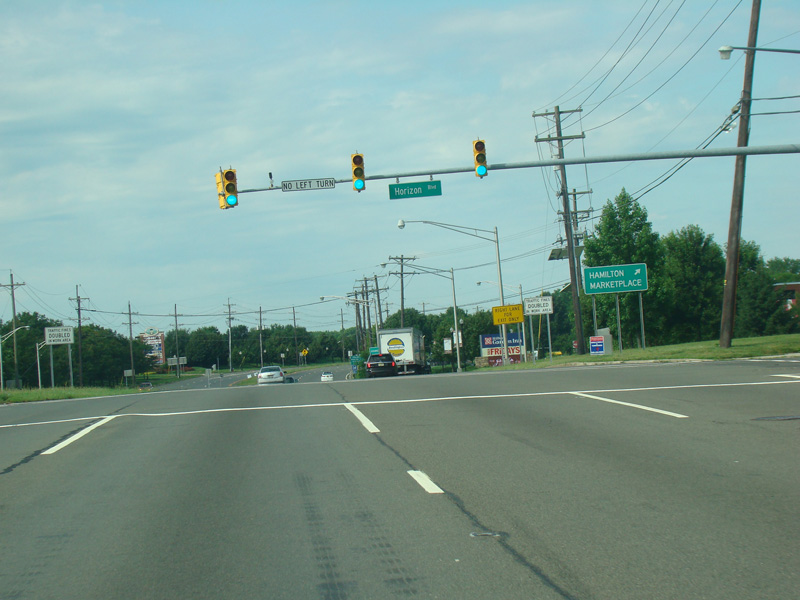 There is a traffic light with jughandles at Horizon Center Boulevard and Hamilton Marketplace.