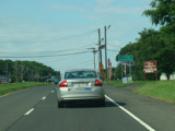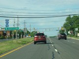 At the end of the expressway, NJ 156 merges in from the right. Turn right to head back north.