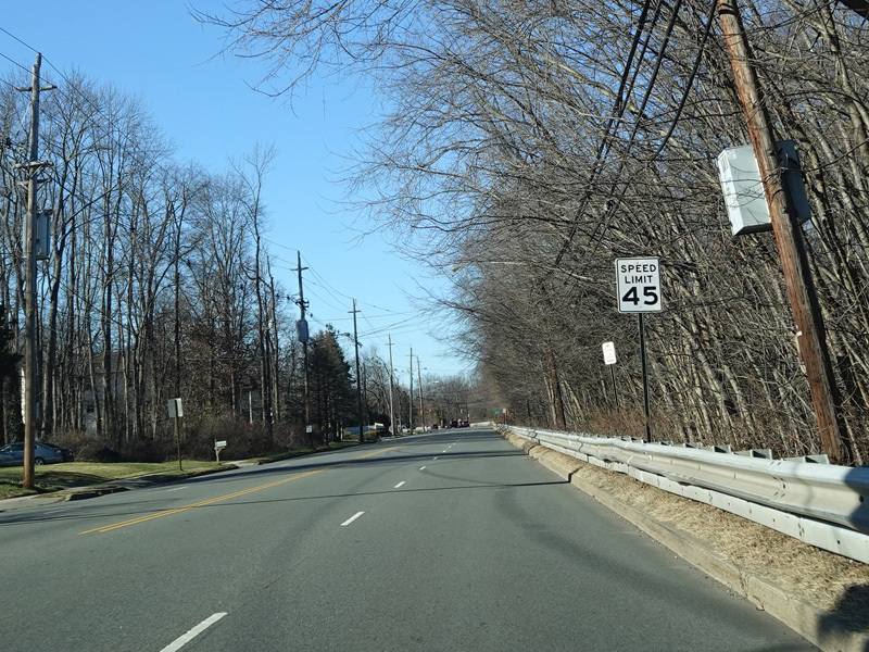 Skipping a significant distance to the south, Morristown Road intersects Childs Road and North Maple Avenue at a traffic light.