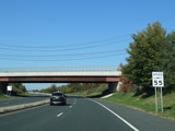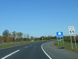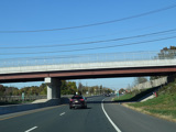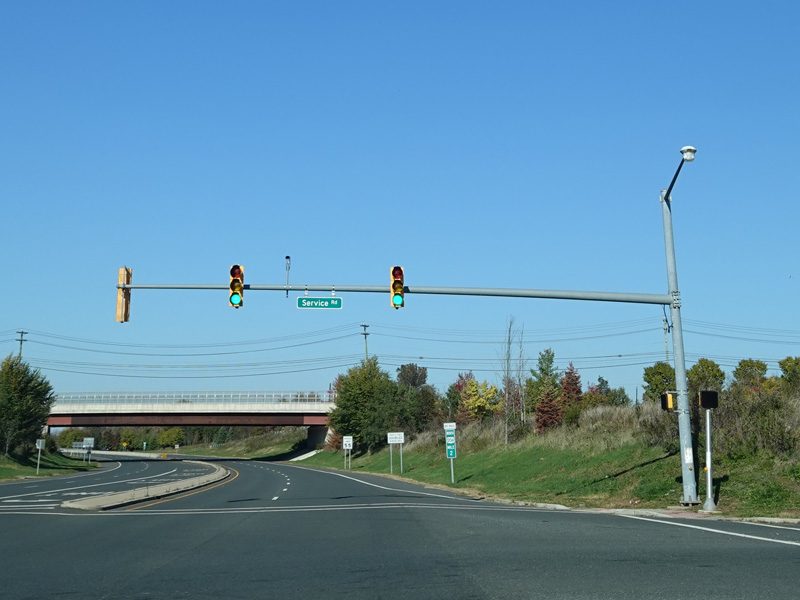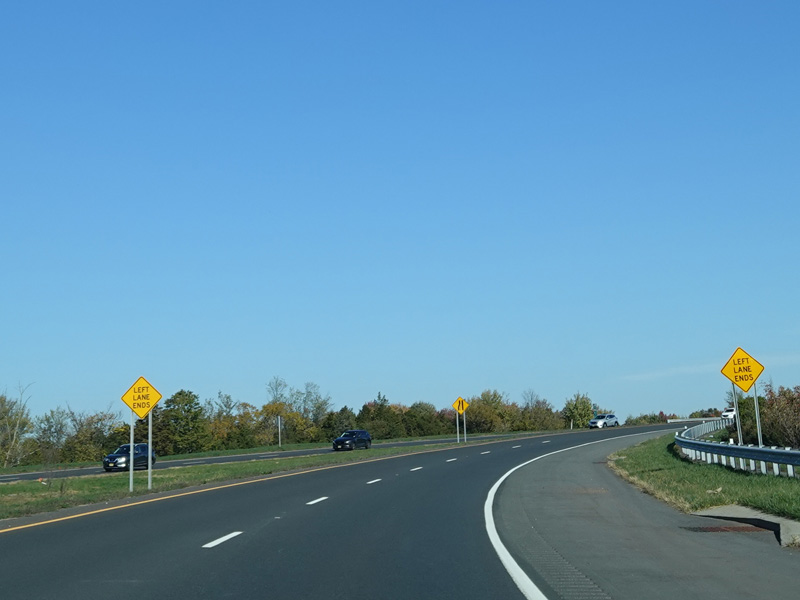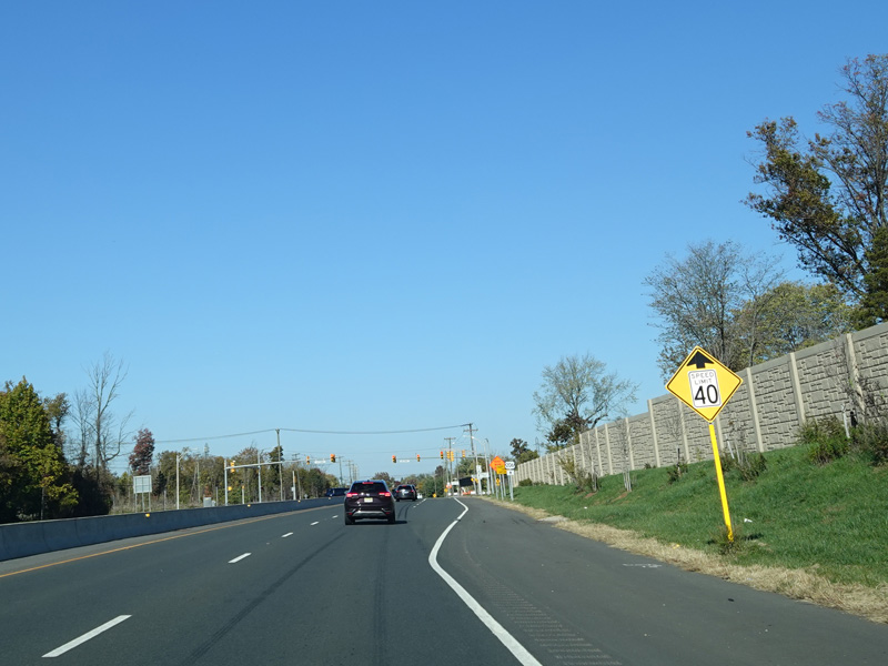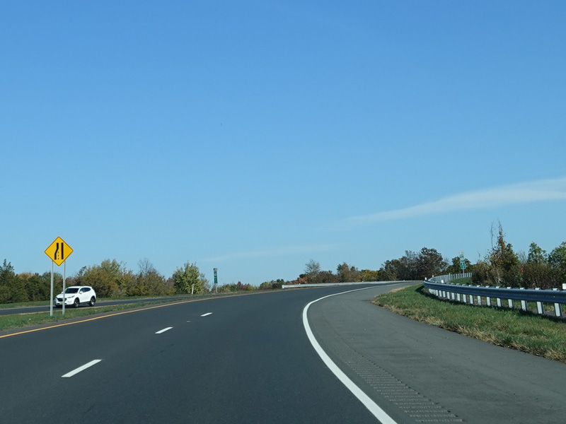 The Hillsborough Bypass widens to four lanes. There is a traffic light at a service road leading to Amwell Road (CR 514). Turn here for a crossover to the mainline of US 206.