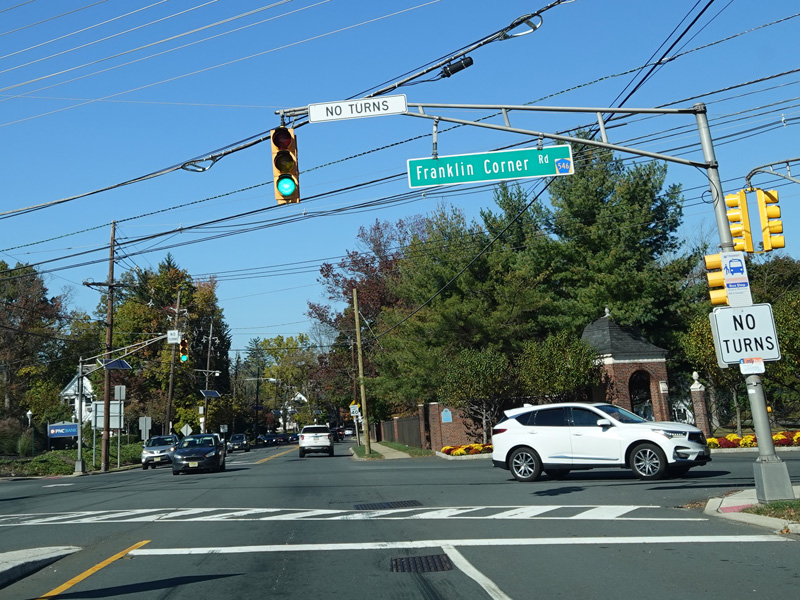 There is a traffic light with jughandles at Franklin Corner Road (CR 546).
