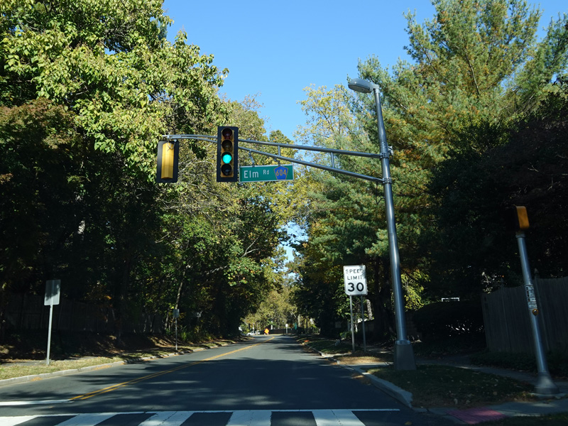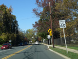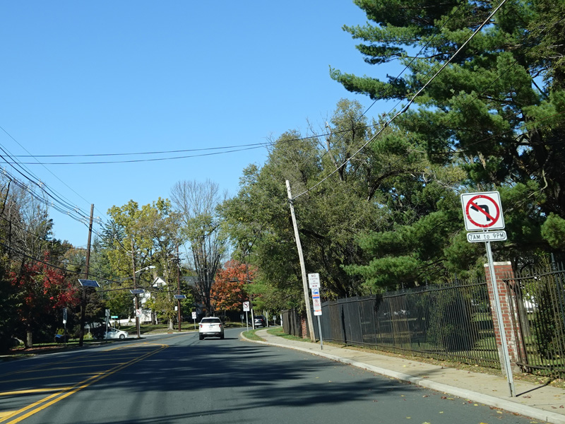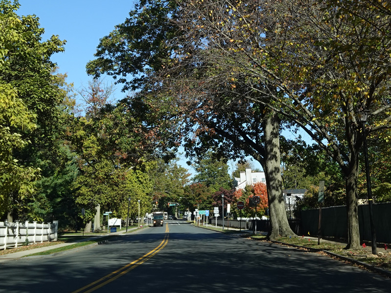 Bayard Lane runs north through Princeton as a two-lane undivided road. There is a traffic light at Hodge Road and Paul Robeson Place.