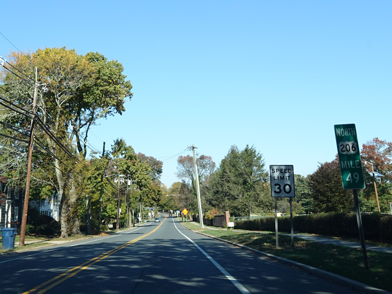 US 206 changes names to become State Road. There is a traffic light with jughandles at Mountain Avenue and Bayard Lane. There is short section of Bayard Lane that is a local street. It does not directly connect to US 206 but must be accessed through Mountain Avenue.