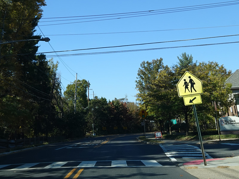Stockton Street runs northeast through Princeton. There is a traffic light at Library Place.