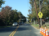 The median ends, and Lawrence Road changes names to become Main Street. There are traffic lights at Craven Lane, Gordon Avenue, and Cold Soil Road.