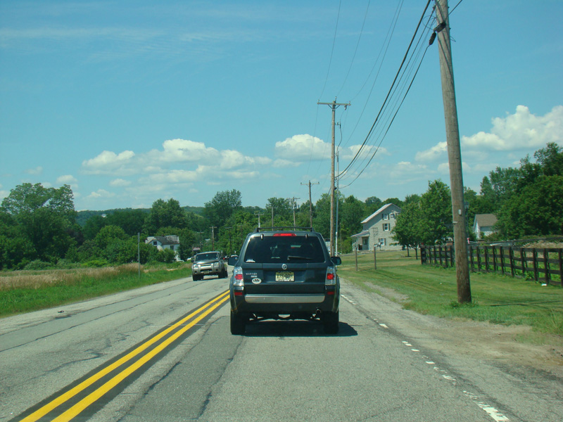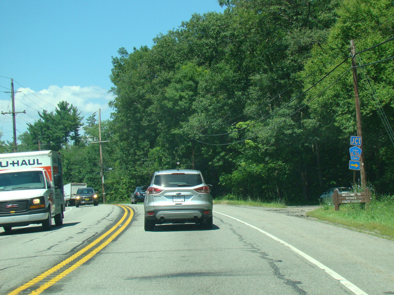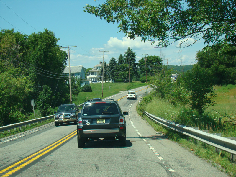 Welcome to Sandyston! Upper North Shore Road (CR 636) begins on the right at an uncontrolled intersection.