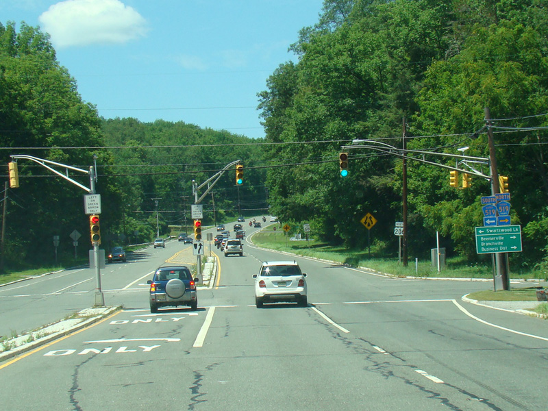 Welcome to Branchville! There is a traffic light at Newton Avenue (CR 519). Turn right to go north or left to go south.