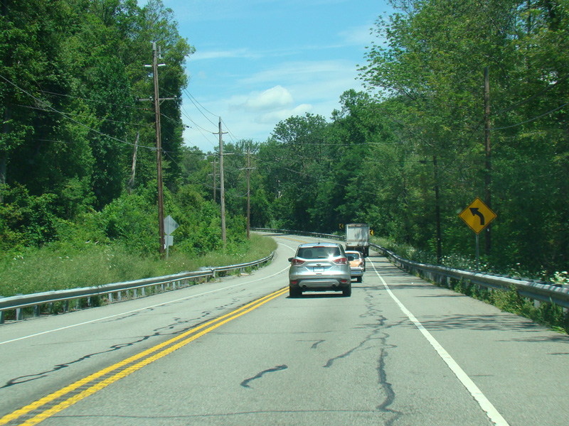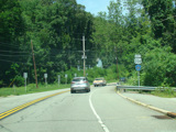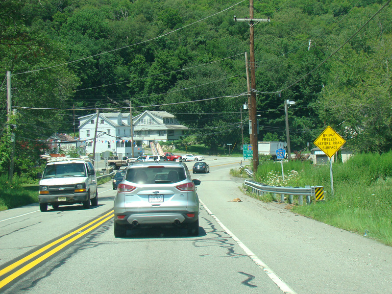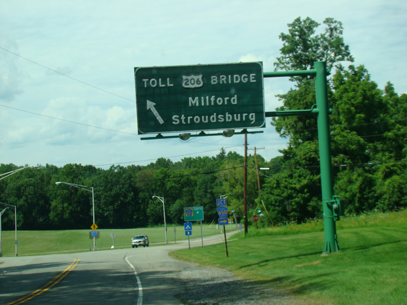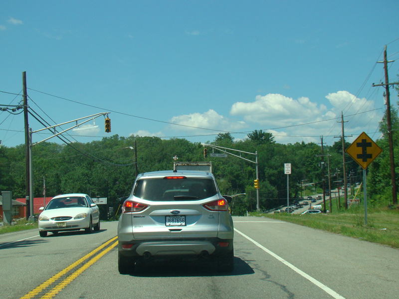 Tuttles Corner-Dingmans Road (CR 560) begins on the left at an uncontrolled intersection.