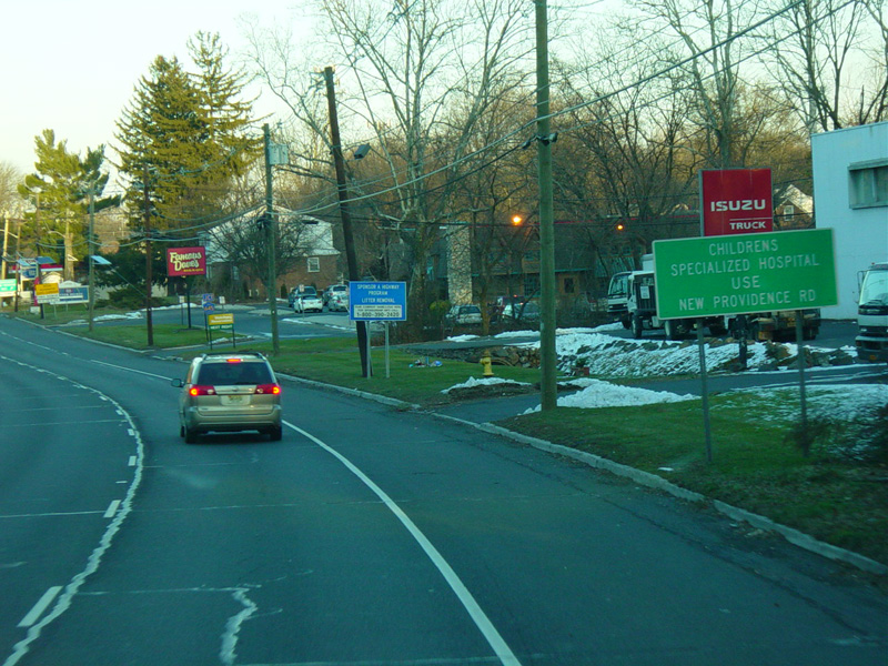 There is a traffic light at New Providence Road (CR 645). Use the jughandle before the light for all turns.