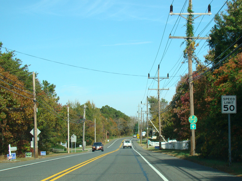 Old Tuckahoe Road (CR 622), which leads to Tuckahoe Road (CR 631), begins on the left at an uncontrolled intersection.
